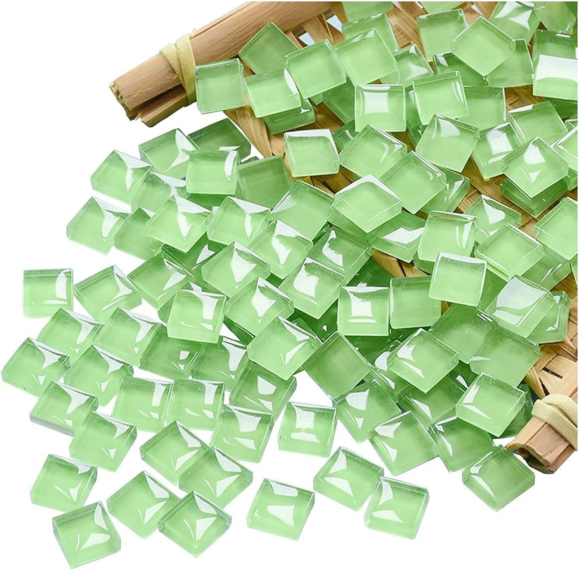 100 Pieces Mosaic Tiles Squares Light Green Crystal Mosaic Tile for Crafts Bulk