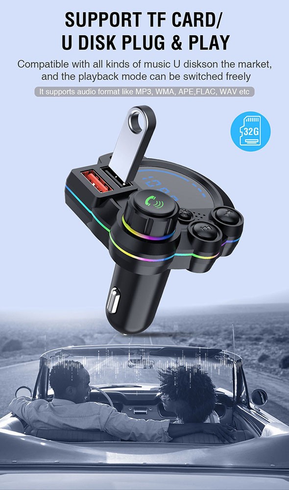 Universal Car Bluetooth FM Transmitter Dual USB Fast Charger for 12-24V Vehicles