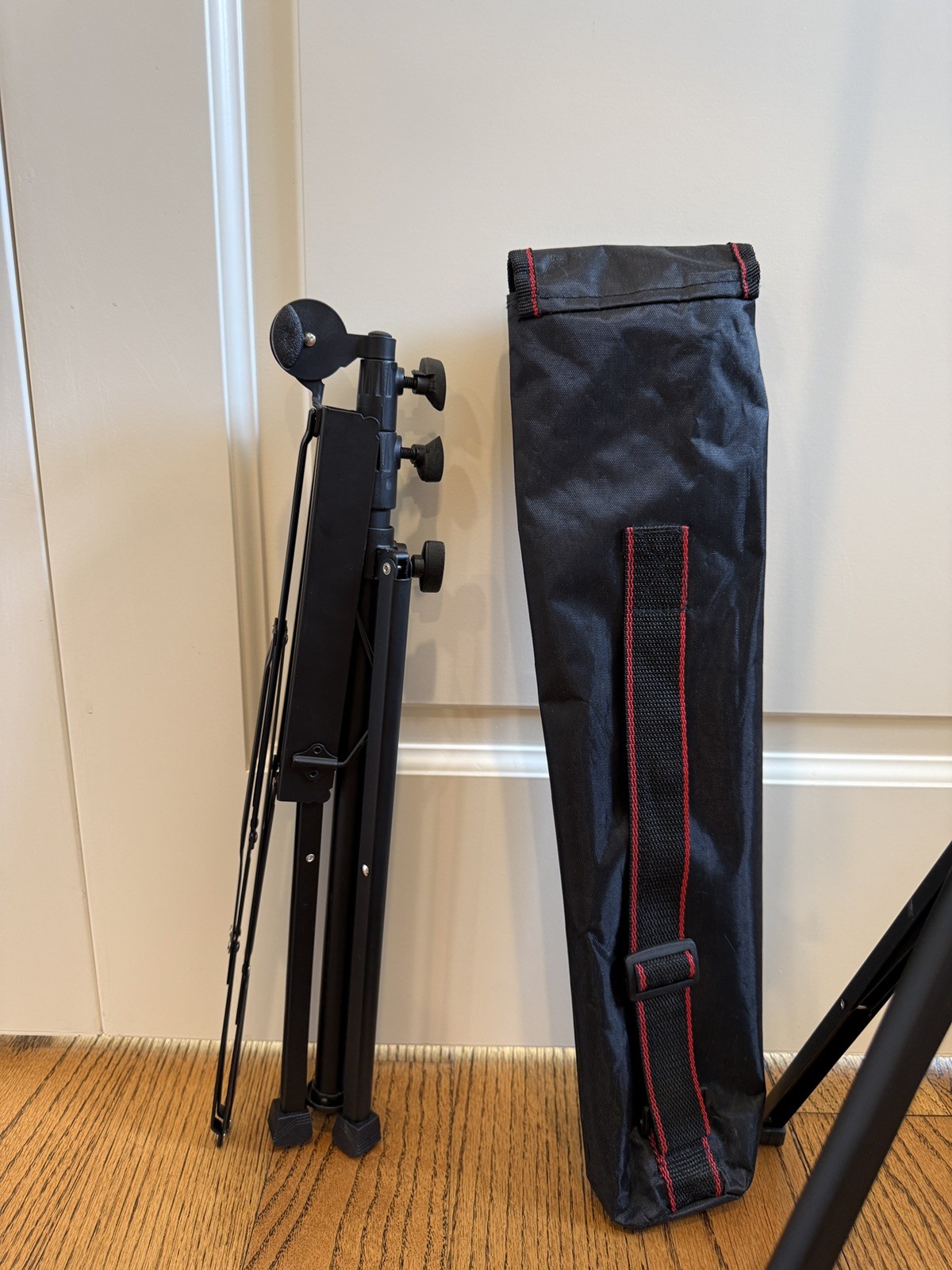 как выглядит 2 Compact Folding Metal Music Stands w Carry Bags Adjustable Height Tripod Base фото