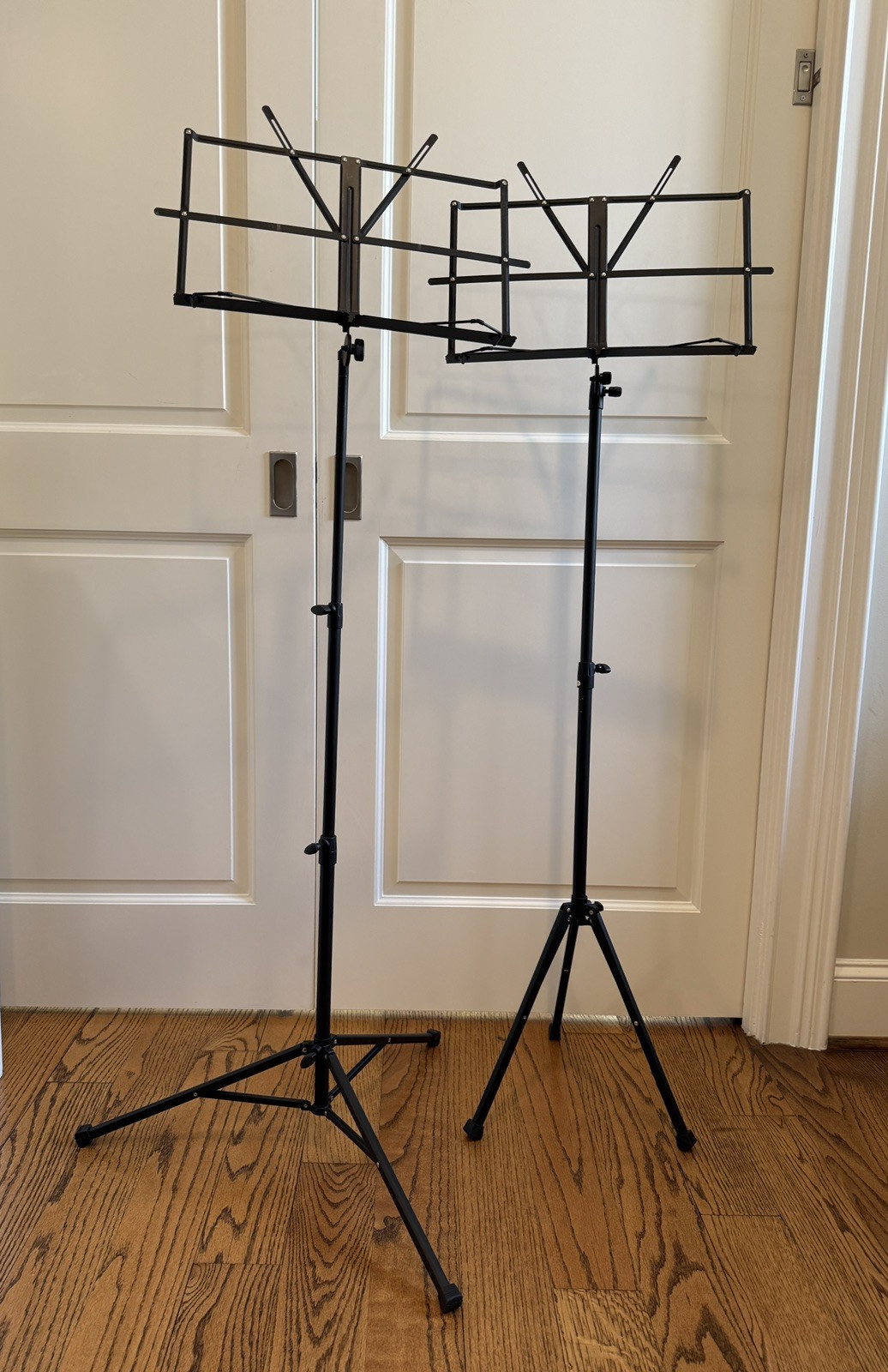2 Compact Folding Metal Music Stands w Carry Bags Adjustable Height Tripod Base
