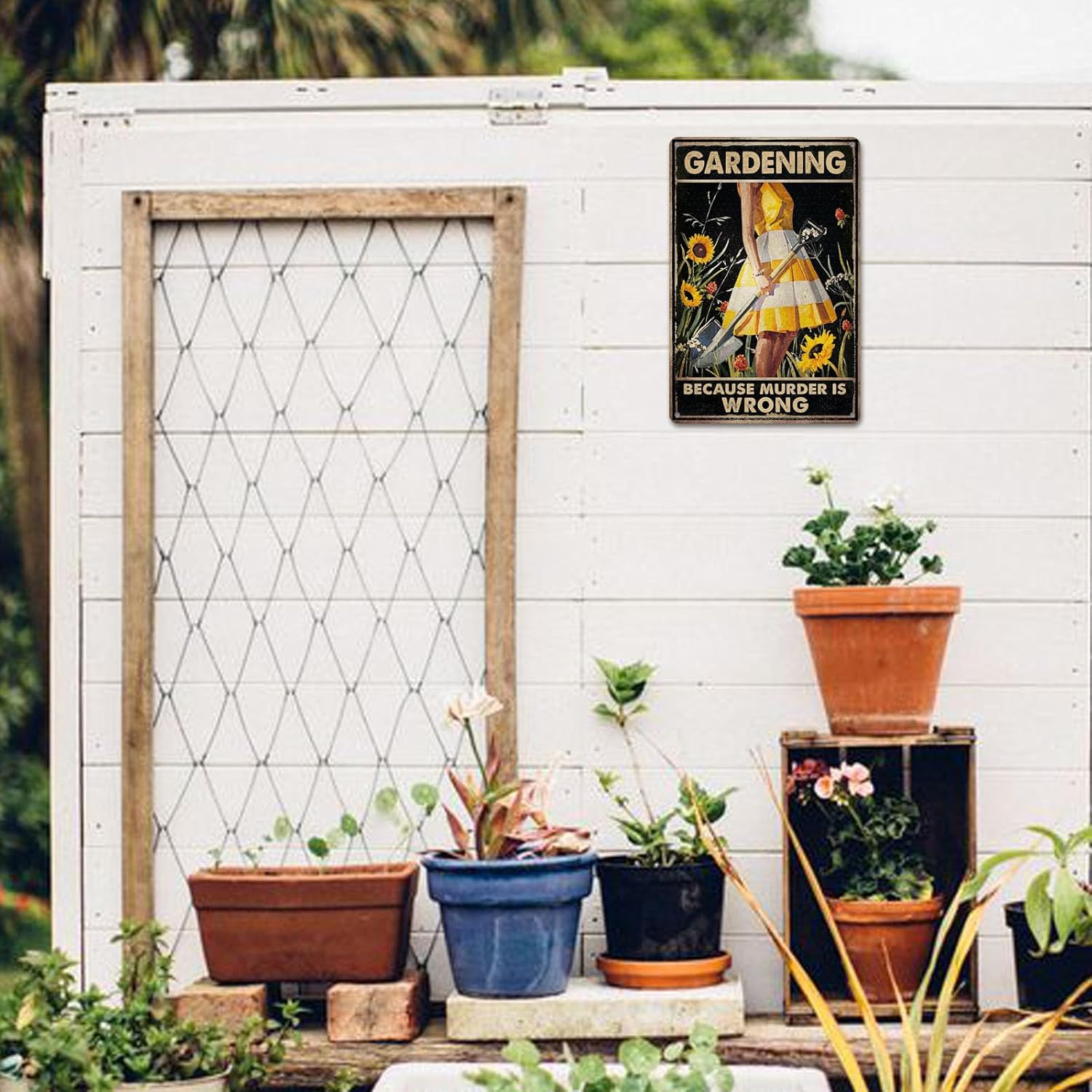 как выглядит Funny "Gardening Because Murder Is Wrong" Metal Sign: WomenS Garden Gift for Ya фото