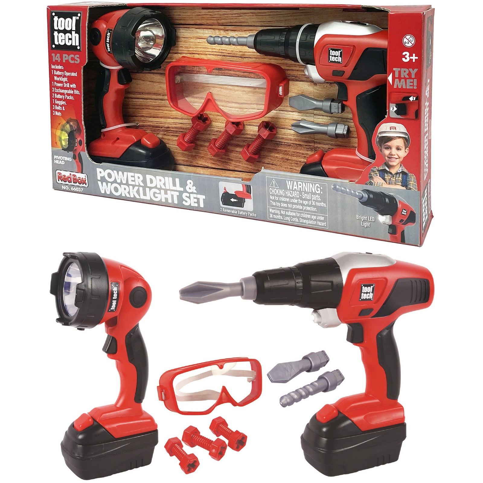 Red Box: Tool Tech: Toy Power Drill Worklight Set - Lights-Sounds, Kids 3
