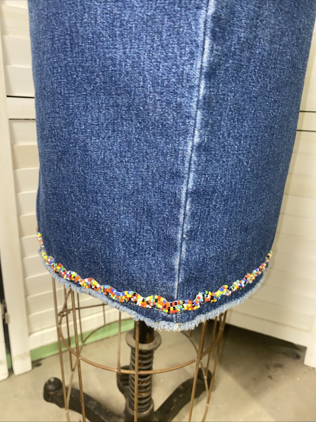 Vintage 90s Liz Claiborne LizWear Denim Jean Blue Skirt Beaded Hem Size 6