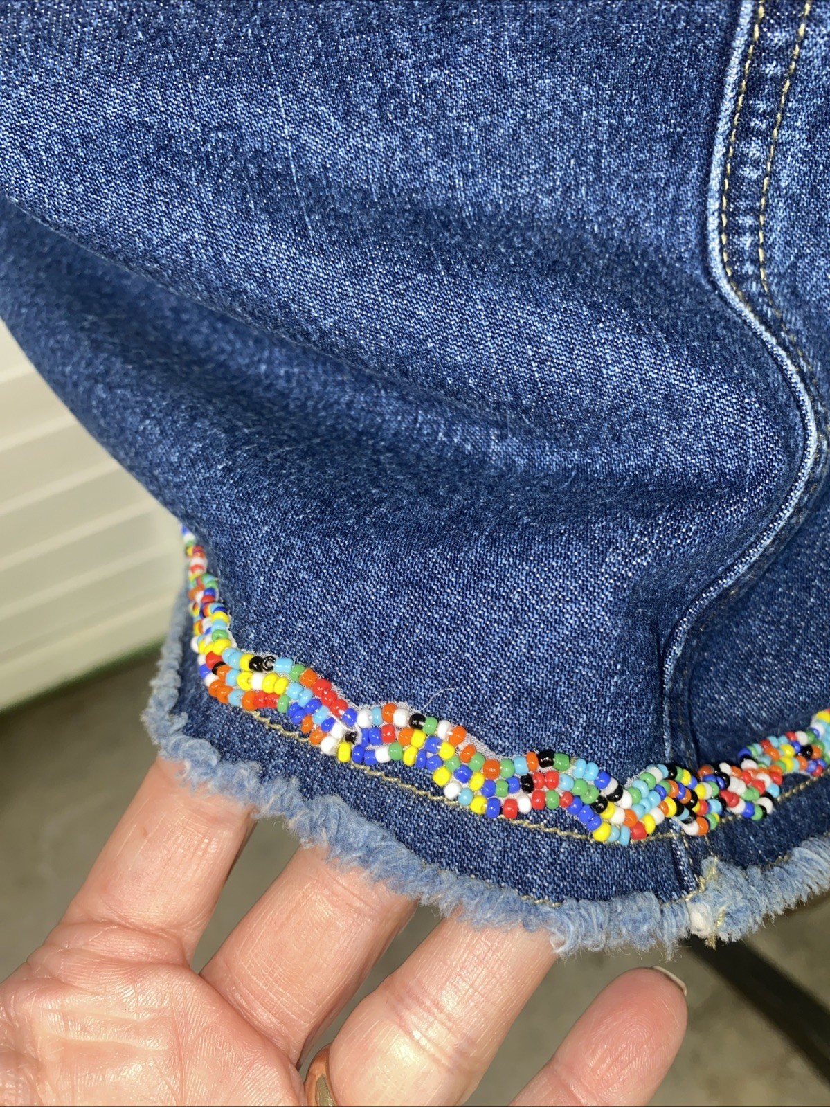 как выглядит Vintage 90s Liz Claiborne LizWear Denim Jean Blue Skirt Beaded Hem Size 6 фото