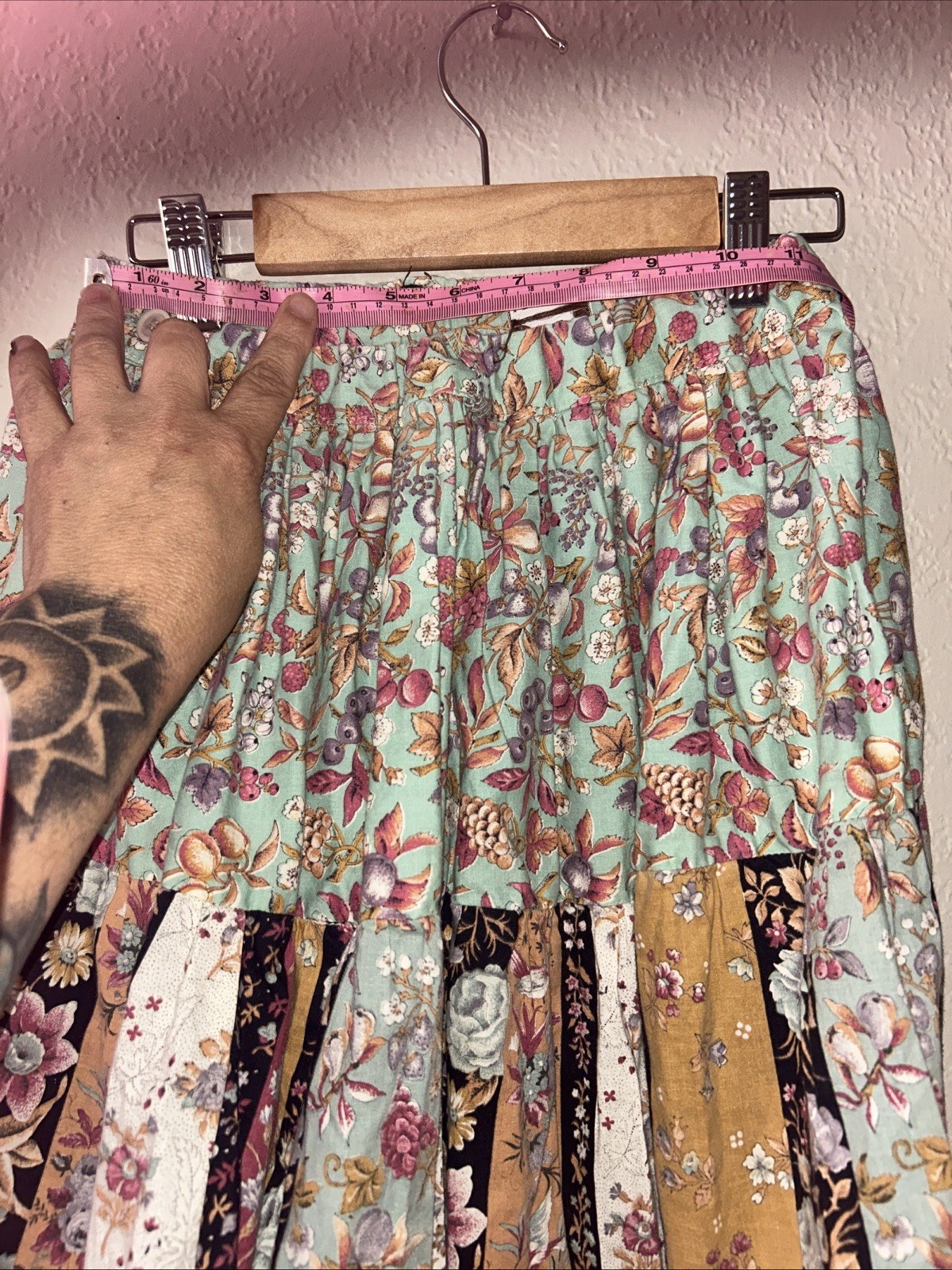 Vintage Patchwork Style Floral Boho Multi Color Women s Skirt Elastic Waistband