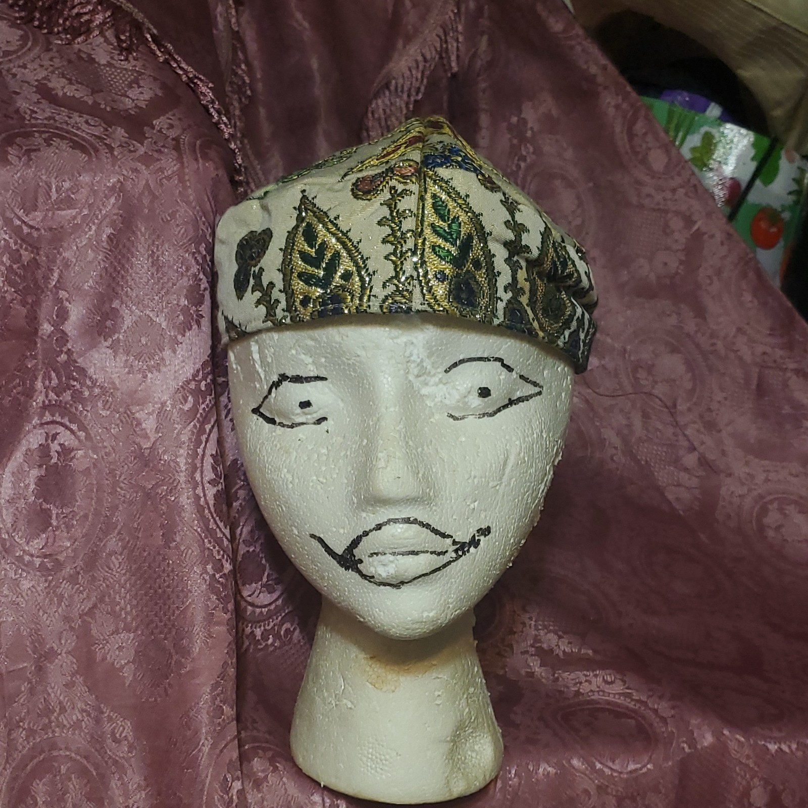 как выглядит Handmade African Kufi Cap Gold Embroidered Cotton Blend One Size for Men фото