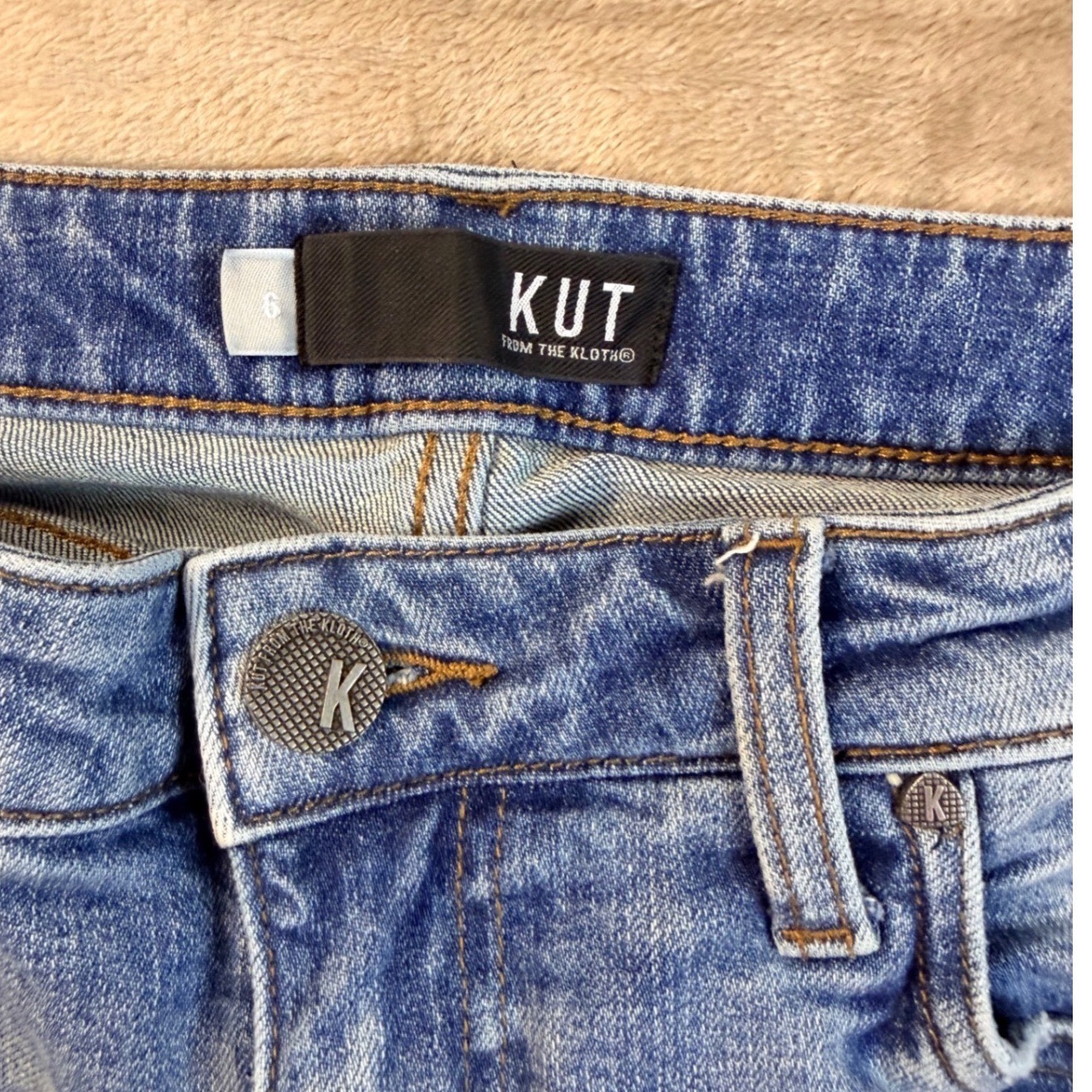как выглядит Kut from the Kloth Catherine Boyfriend Jeans Blue Medium Wash Frayed Hem Size 6 фото