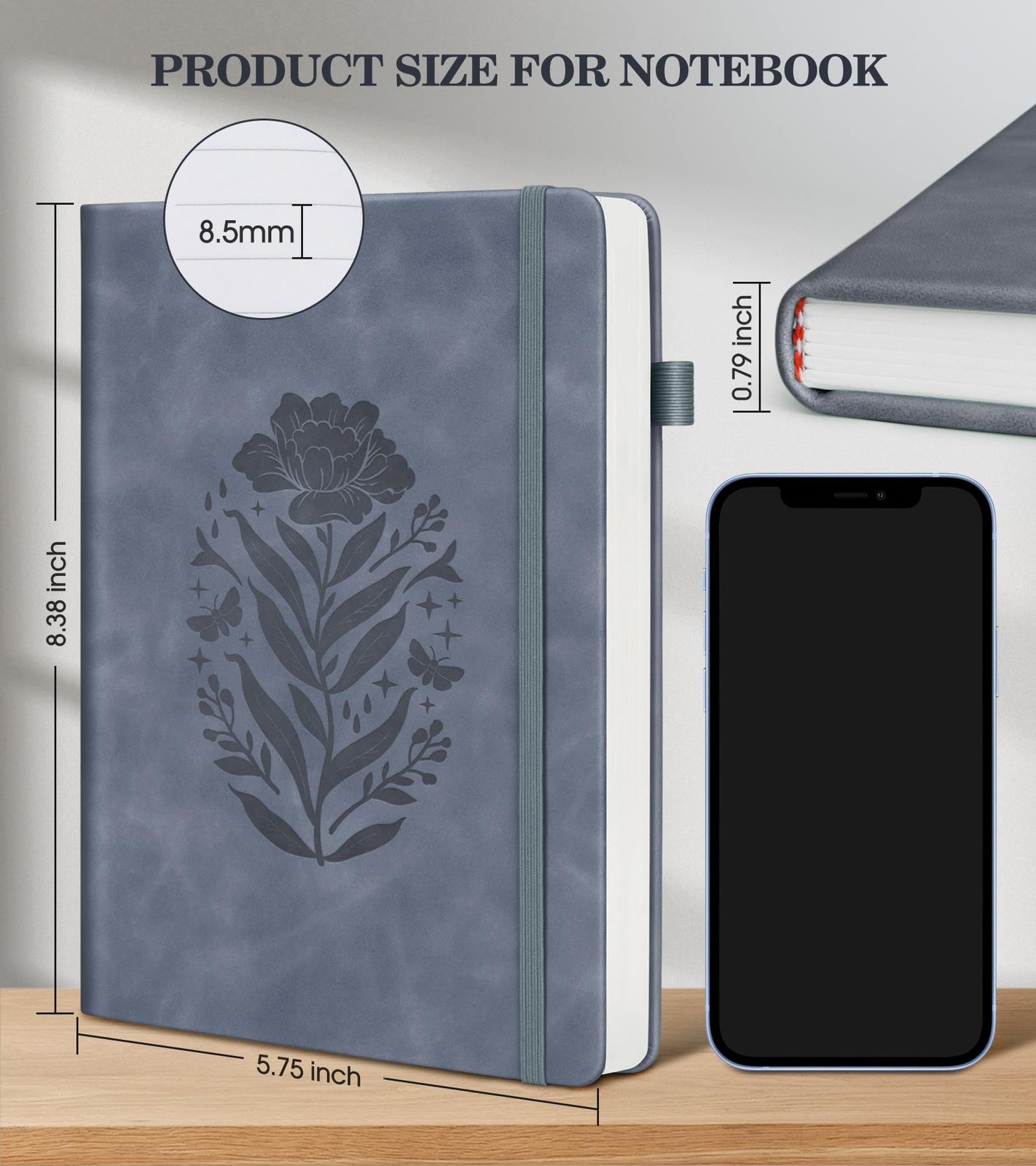 как выглядит Lined Journal Notebook for Men Women, A5 Leather Journals A5, Grayblue фото