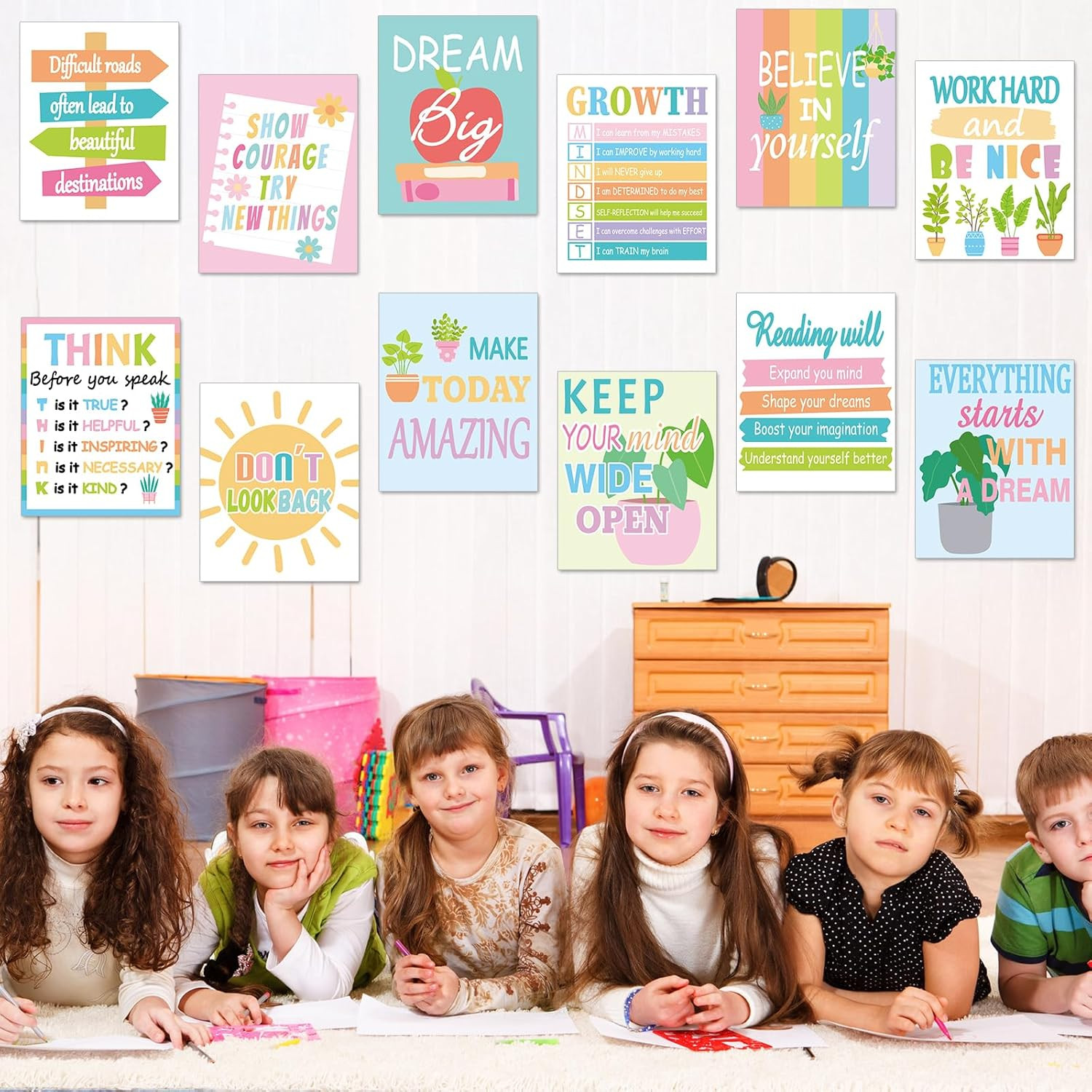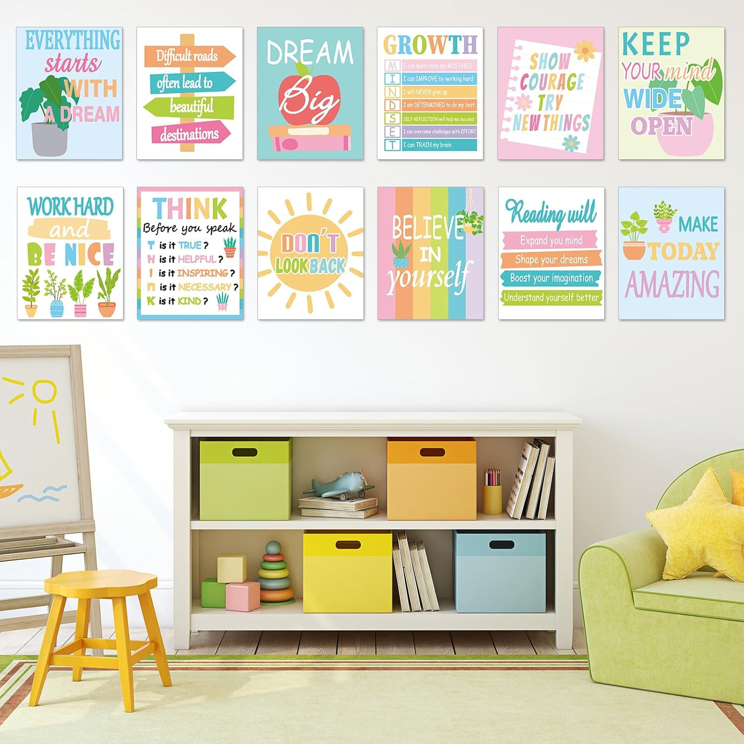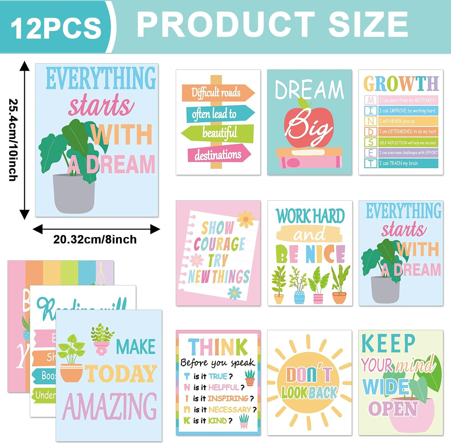 12PCS Motivational Posters for Classroom Growth Mindset Educational Wall Art for