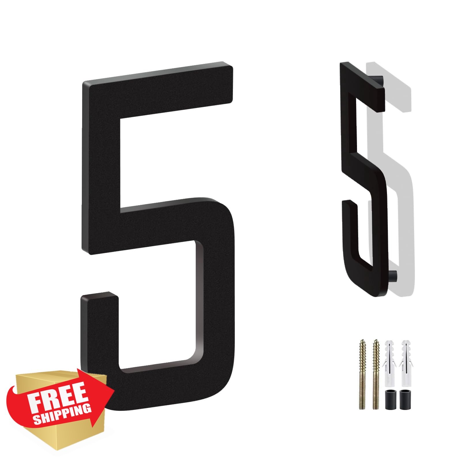 4 Black Aluminum Floating House Numbers Address Outdoor Metal