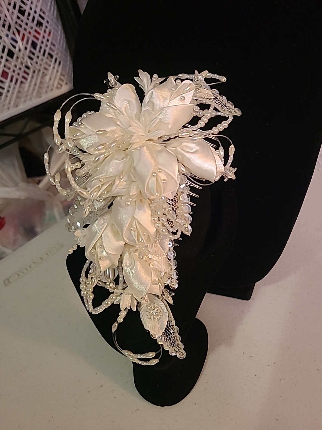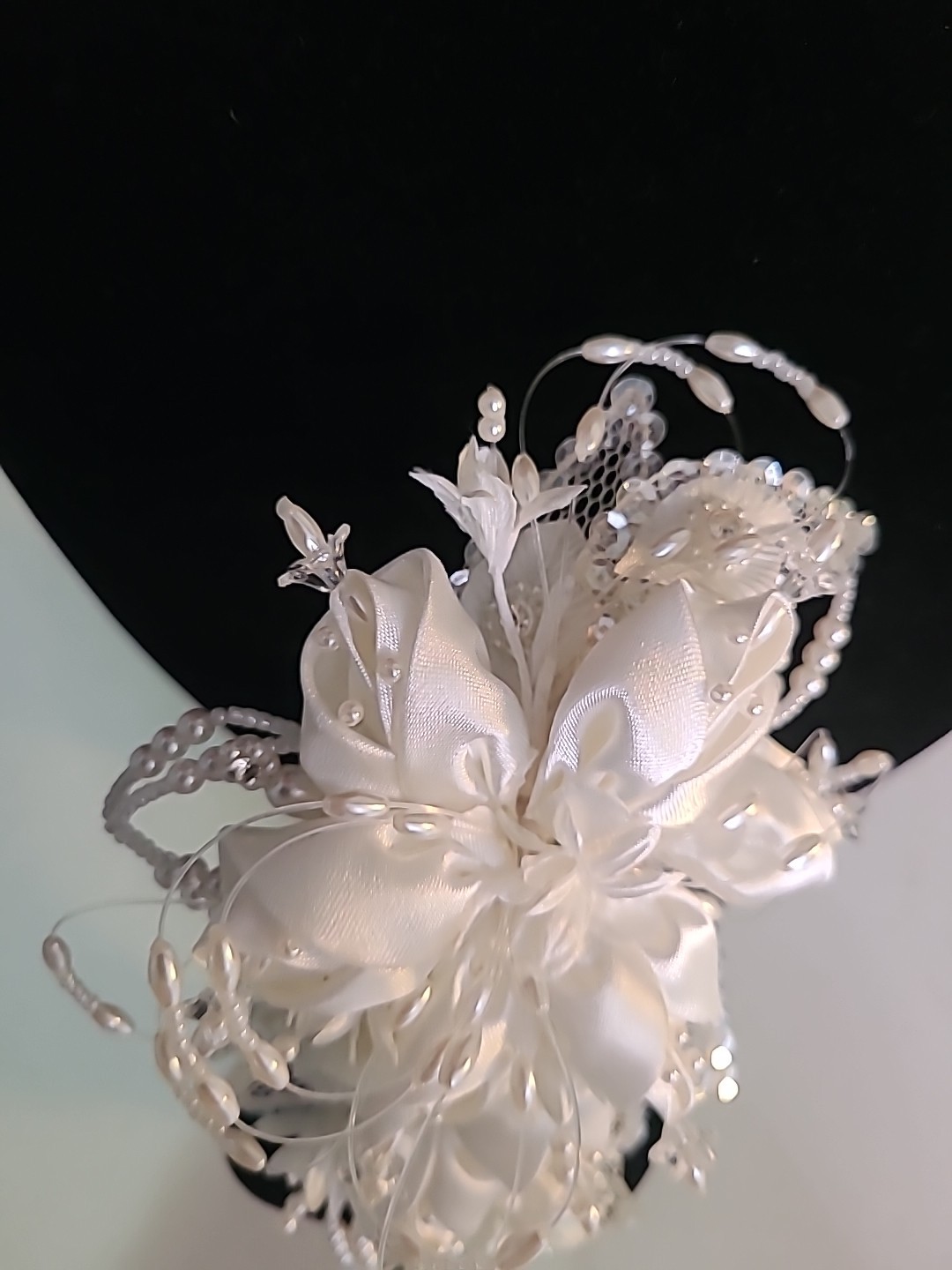 Vintage Bridal Hair Accessory Pearl Sequin Satin Roses Comb Wedding Headpiece