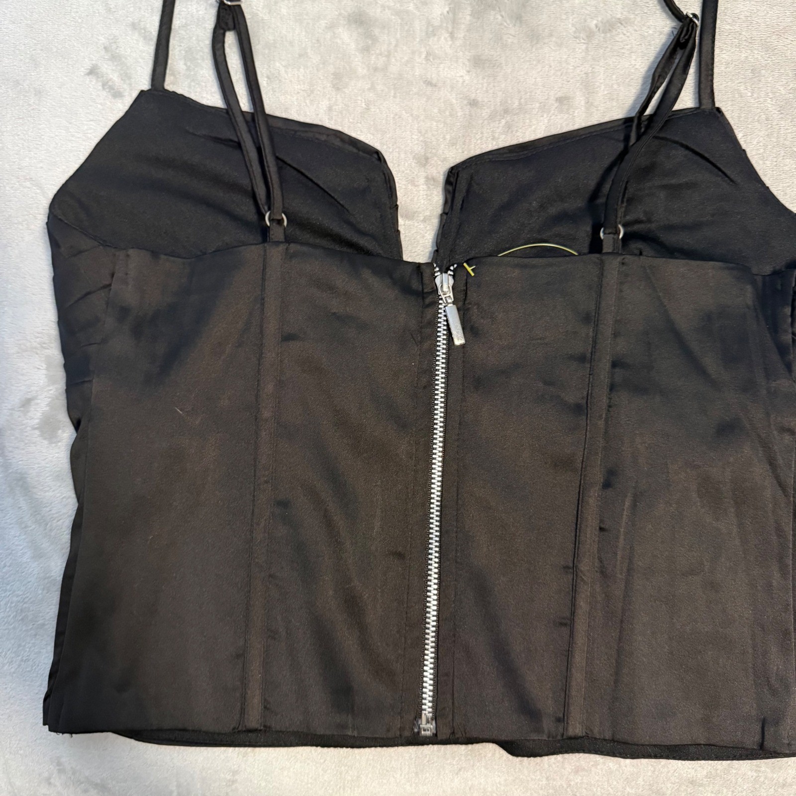 GUESS Black Satin Corset Top Medium NWT Zip Back Bustier