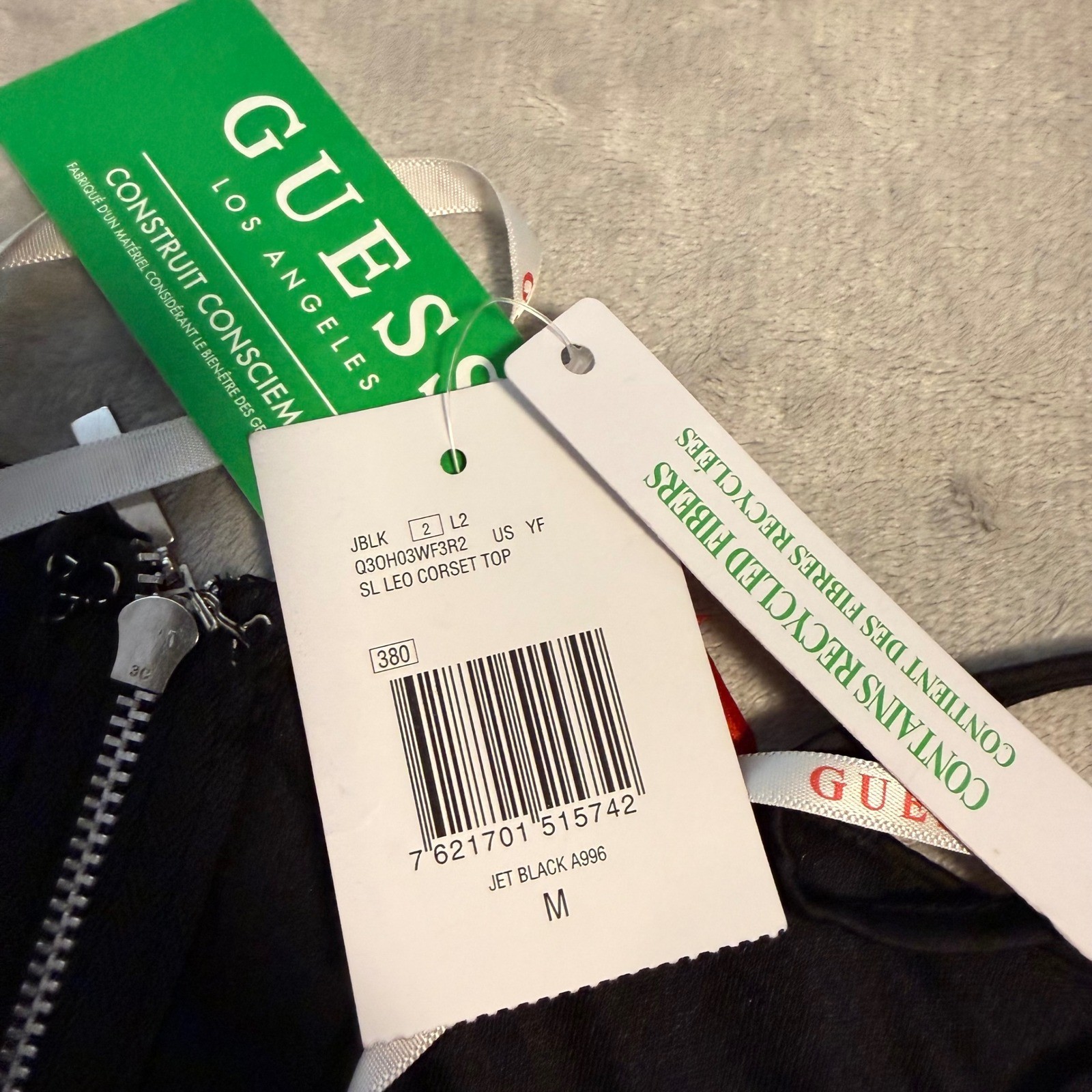 как выглядит GUESS Black Satin Corset Top Medium NWT Zip Back Bustier фото