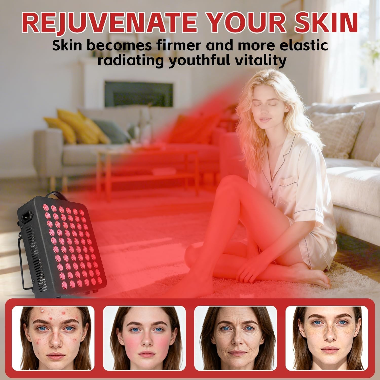 Red Light Therapy Device 300W LED Red/Near-Infrared 660nm/850nm w/ Hanging Kit