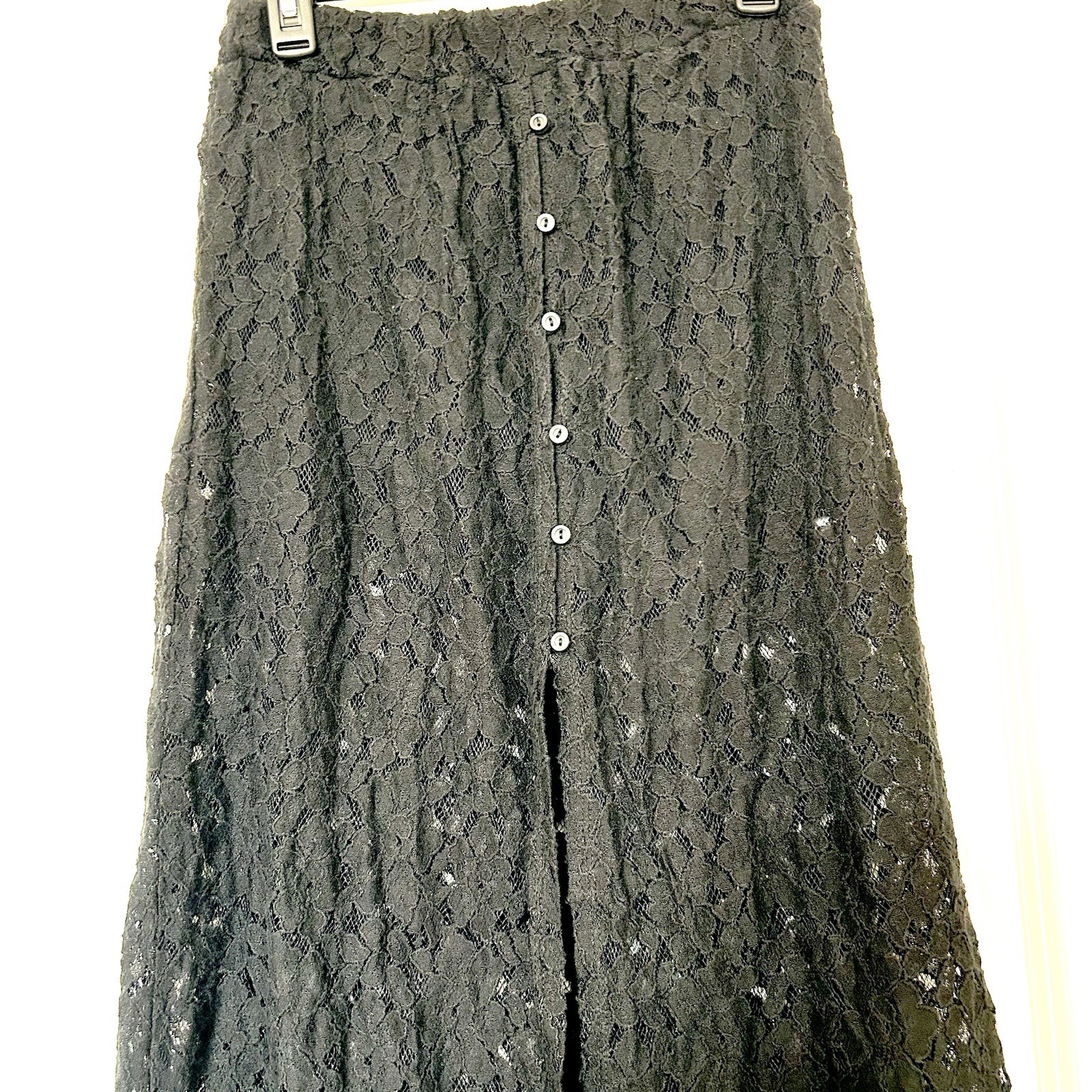 как выглядит VTG Y2K Whimsigoth Floral Lace Maxi Skirt Women S Black Boho Sheer Overlay Goth фото