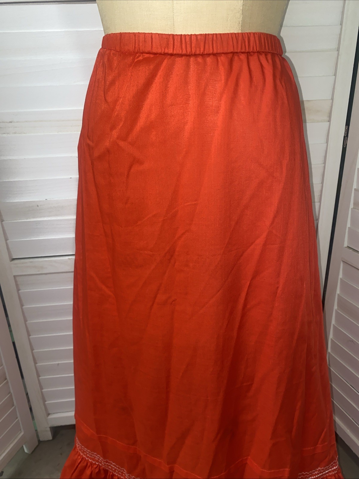 VTG 70s Handmade Red Prairie Maxi Skirt Boho Cottagecore Eyelet Lace X Large
