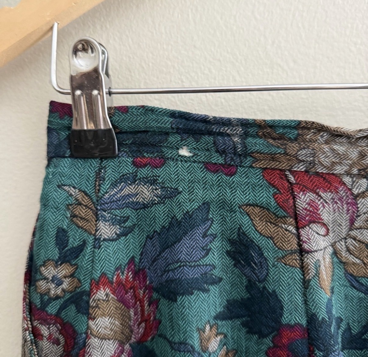 как выглядит Vintage Moody Floral Teal Pleated Midi Skirt size medium фото