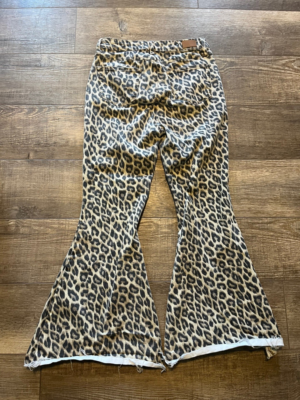 как выглядит Judy Blue Los Angeles Leopard Super Flare Jeans Stretch Raw Hem Denim Size 9 29 фото