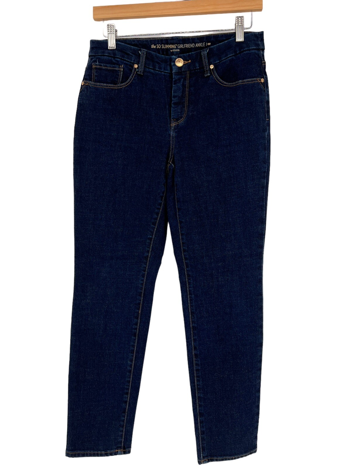 как выглядит Chicos The So Slimming Girlfriend Ankle Jeans Size XS 2 Dark Wash Pockets фото