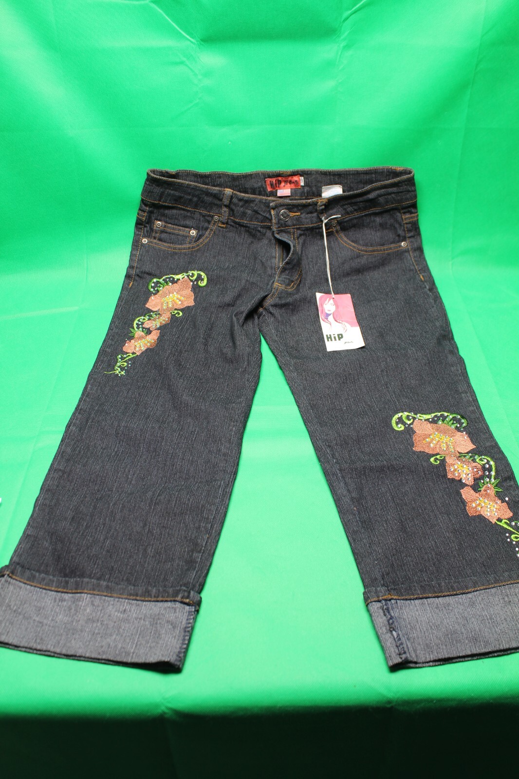 Hip Jeans embroidered flowers Womens Kids Teen Youth Size 9 USA