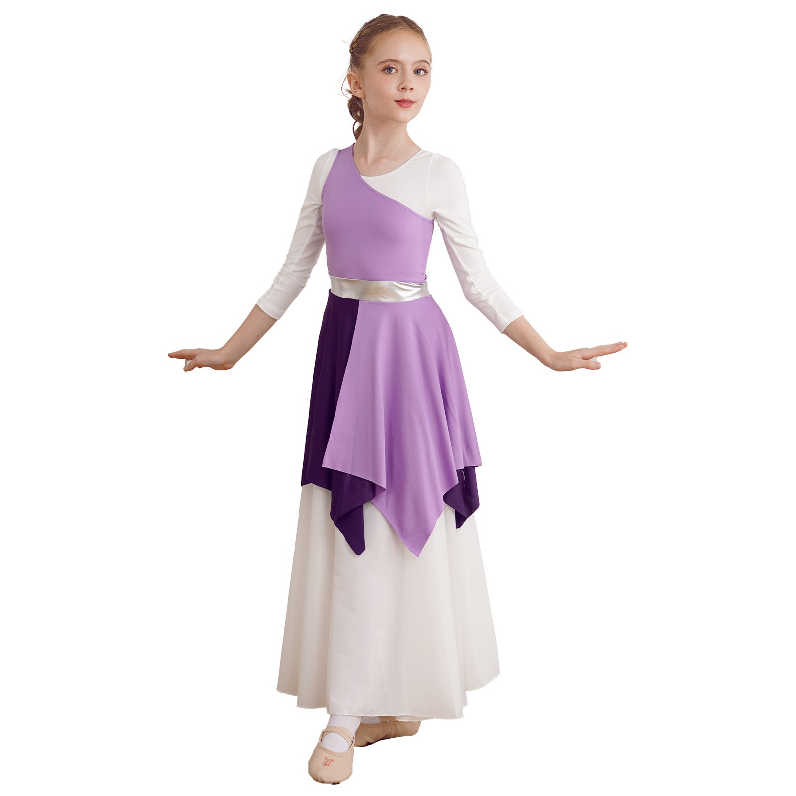 Kids Girls Color Block Liturgical Praise Dance Dress Worship Lyrical Costumes