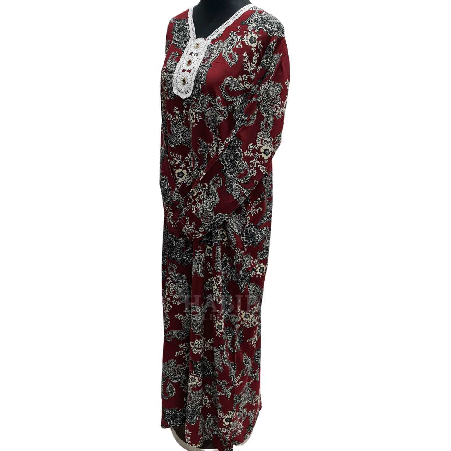 Women's Maroon Sequin Kaftan Floral Striped Pattern