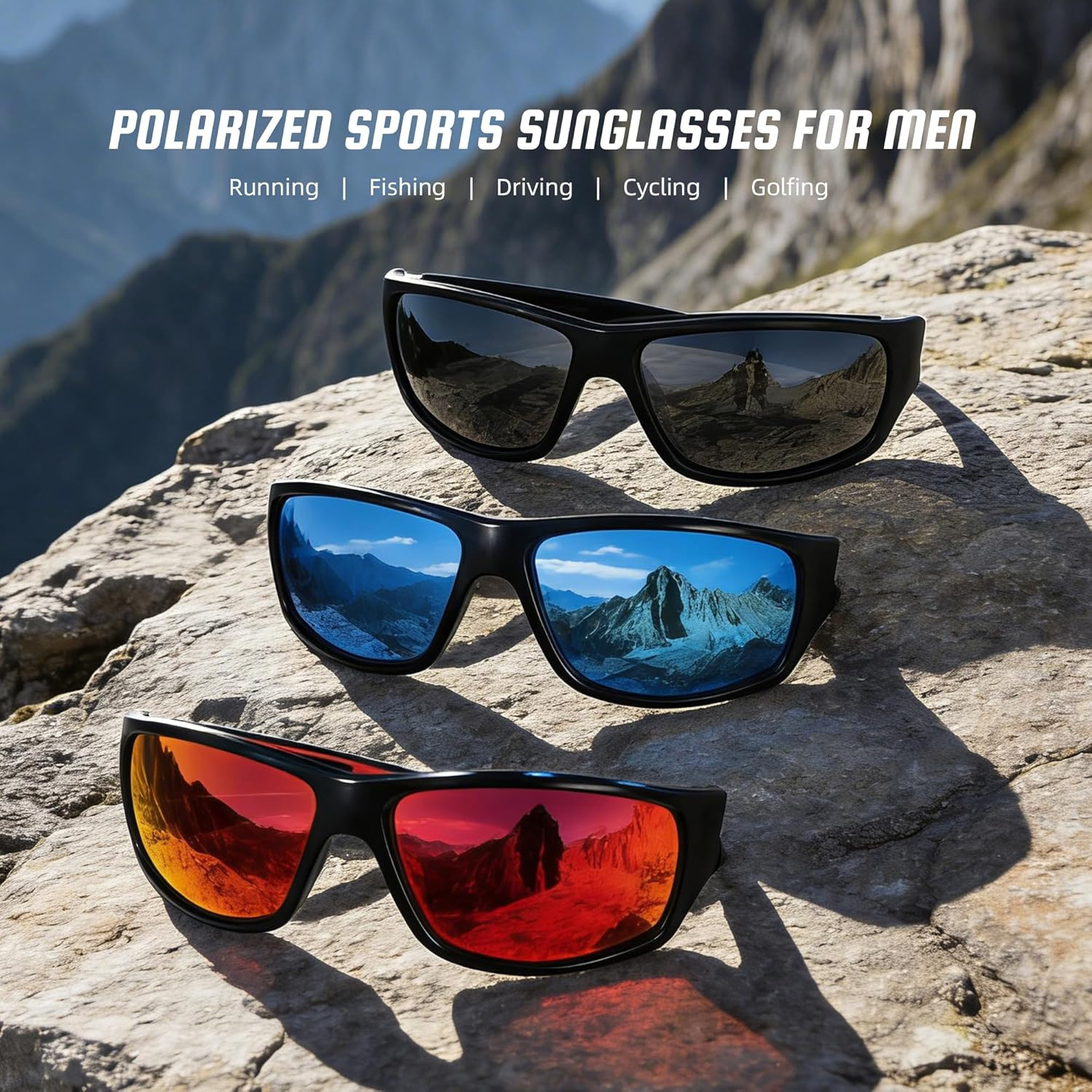 Polarized Sports Sunglasses for Men, Wrap around Sun Glasses UV Protection for C