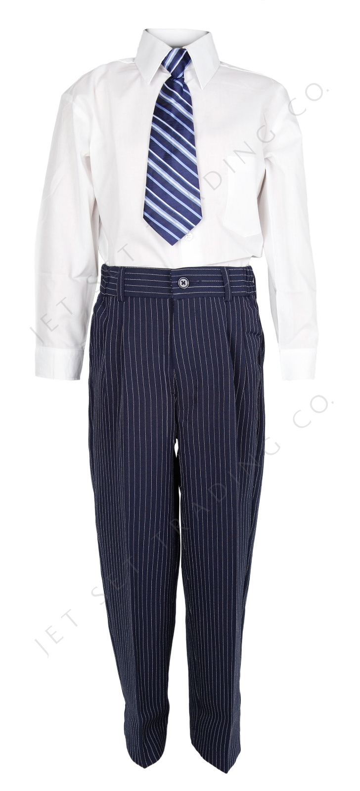 как выглядит BOYS 5 PC NAVY BLUE SUIT SET 6231NVY PINSTRIPE SIZES 4 - 20 фото