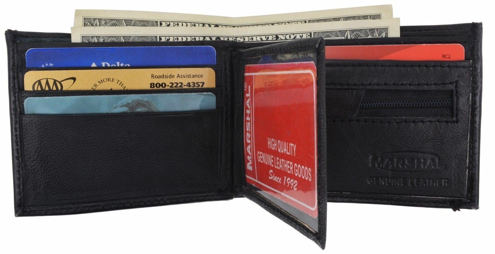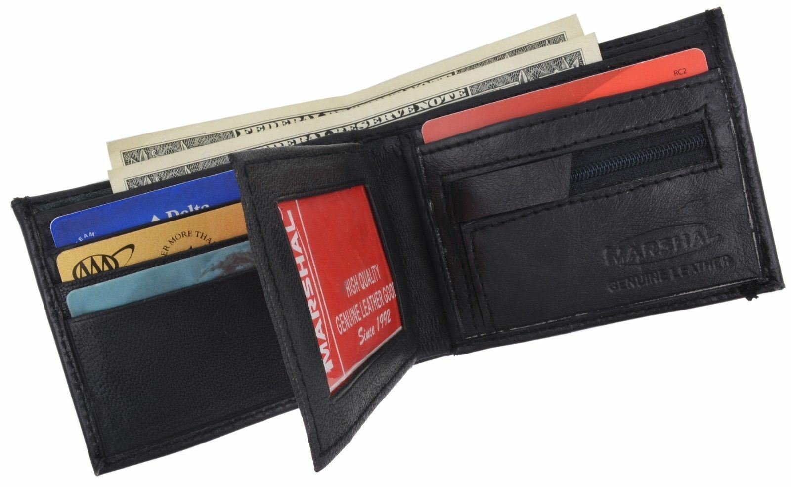 Black Men's Leather Bifold Credit/ID Cards Holder Slim Wallet by Marshal
