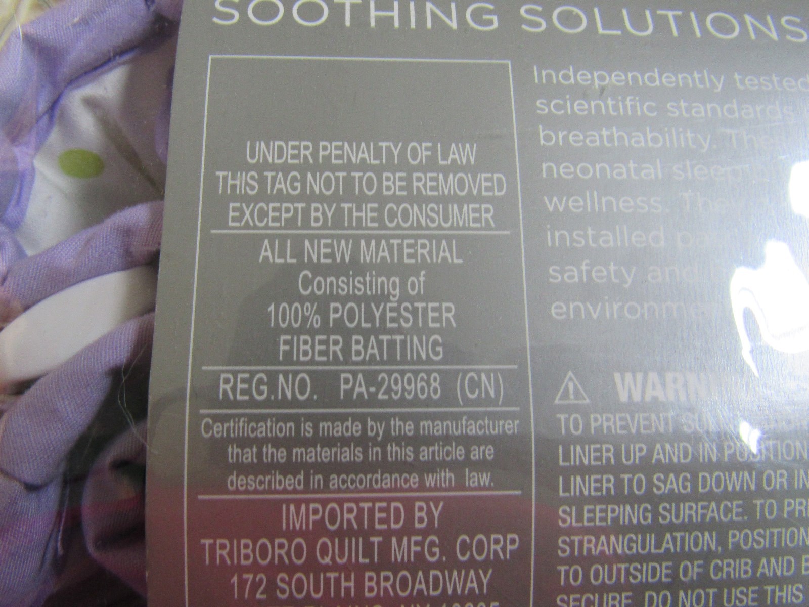 Just Born SootheTime Fresh Air Crib Liner Lavender Green Dots new