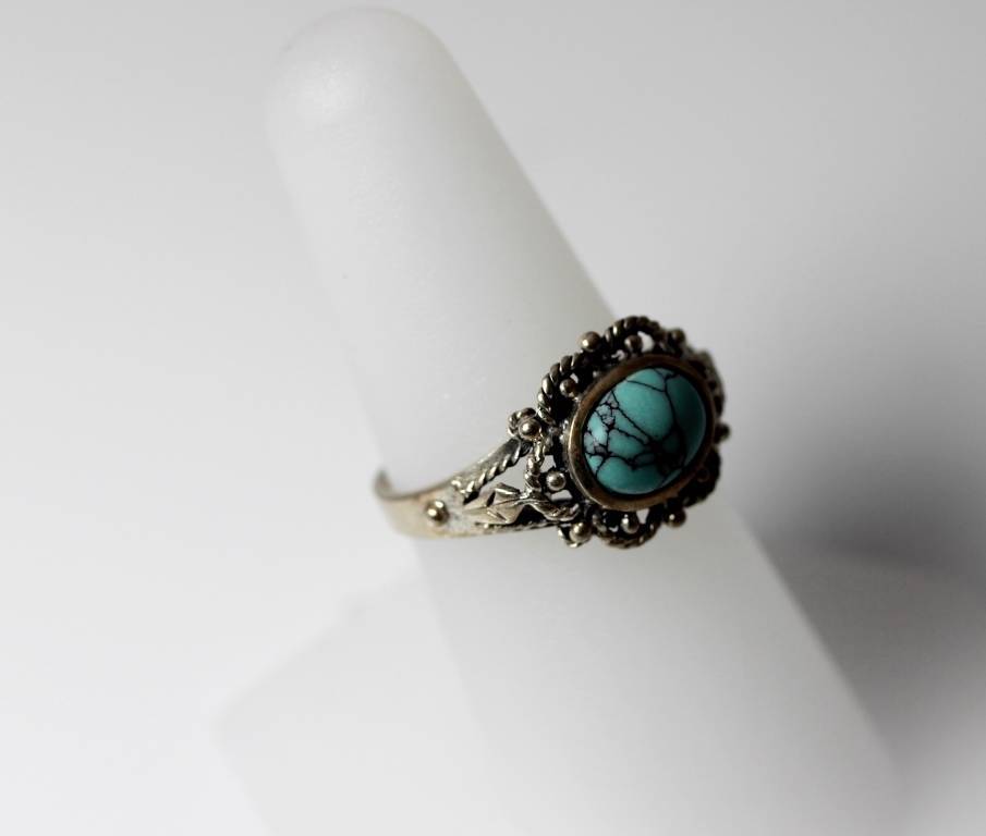 Pretty Sterling Silver Dyed Howlite Cabochon Ring Size 7.5 - 4888