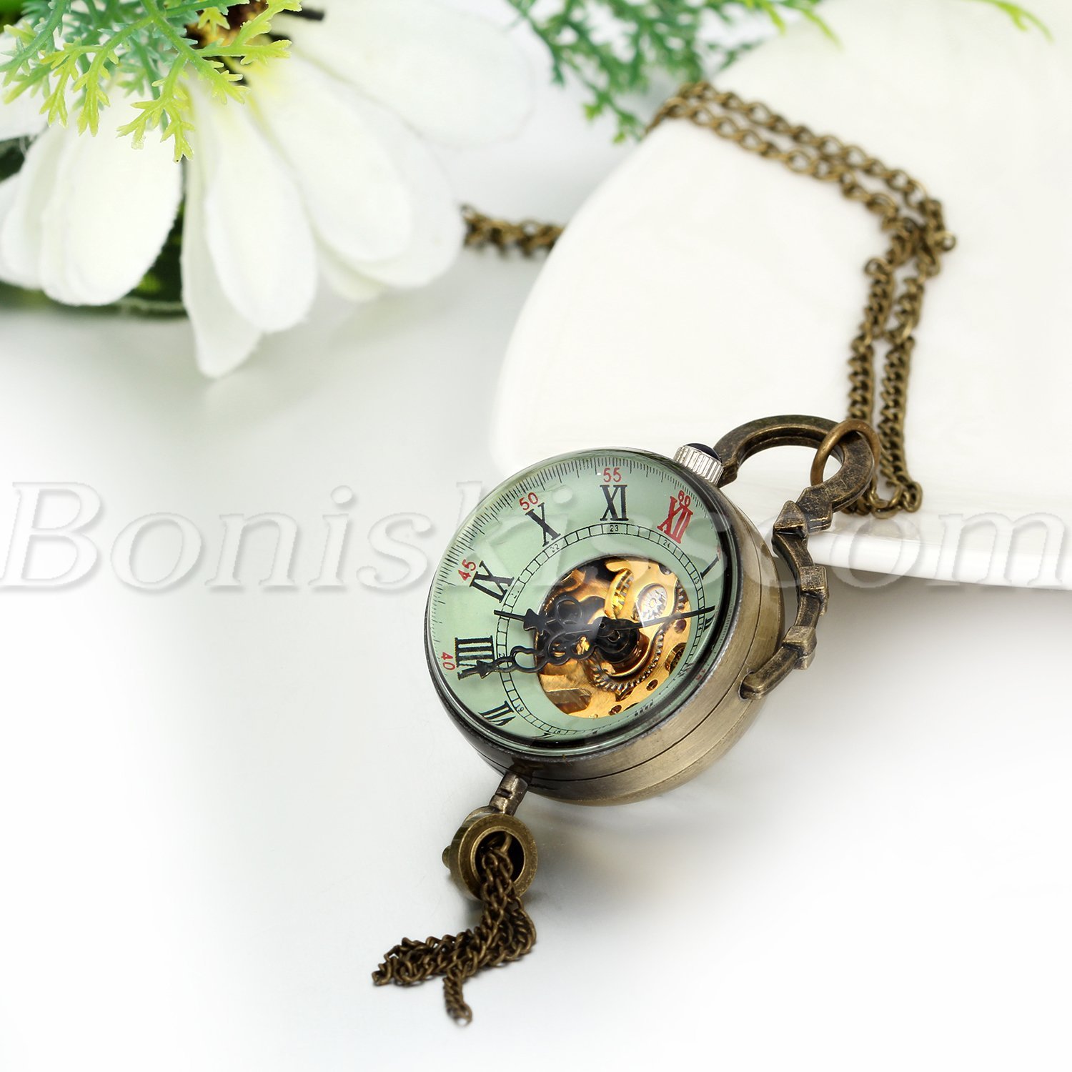 Antique Transparent Glass Roman Hand up Mechanical Sweater Chain Pocket Watch