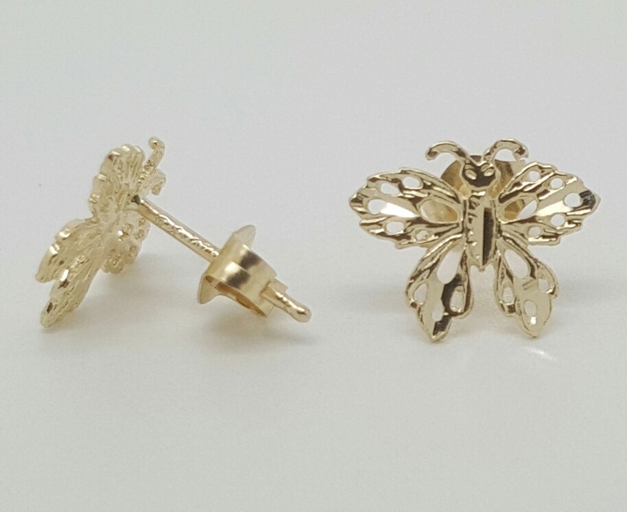 14k Solid Yellow Gold Butterfly Mariposa Stud Earrings Push Back