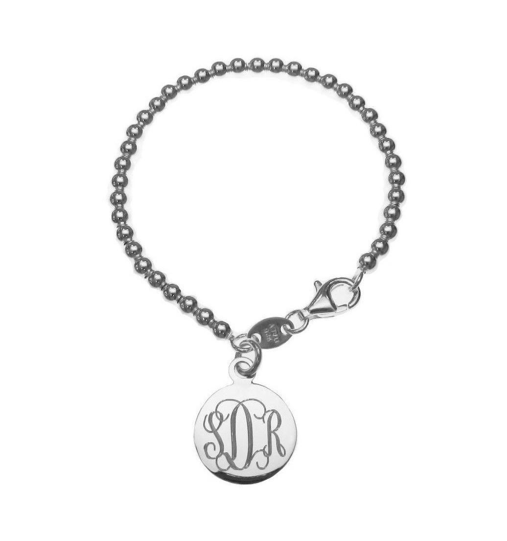 Sterling Silver 3mm Baby Bead Bracelet, Newborn to 5yrs Monogram Bracelet