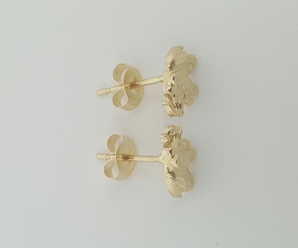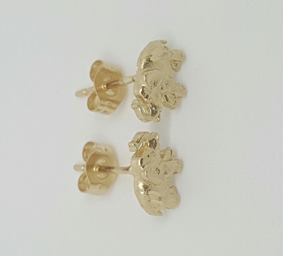 14k Solid Yellow Gold Elephant Stud Earrings Push Back 8 MM
