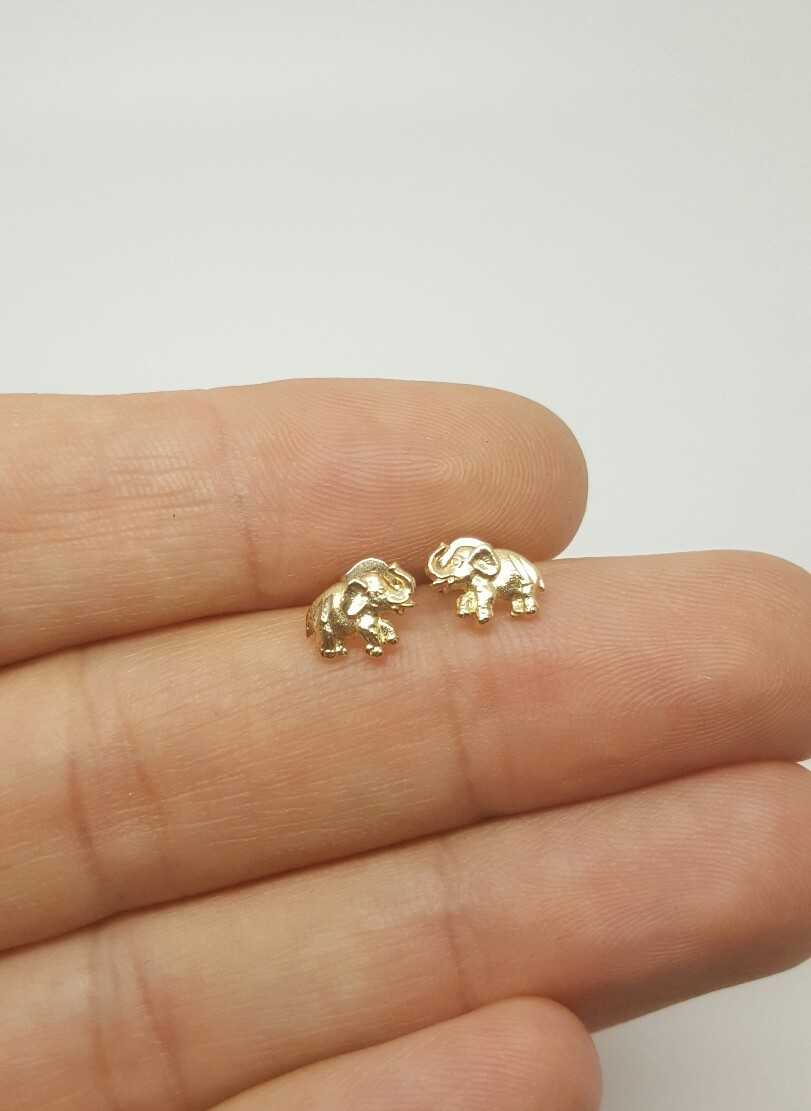 как выглядит 14k Solid Yellow Gold Elephant Stud Earrings Push Back 8 MM фото