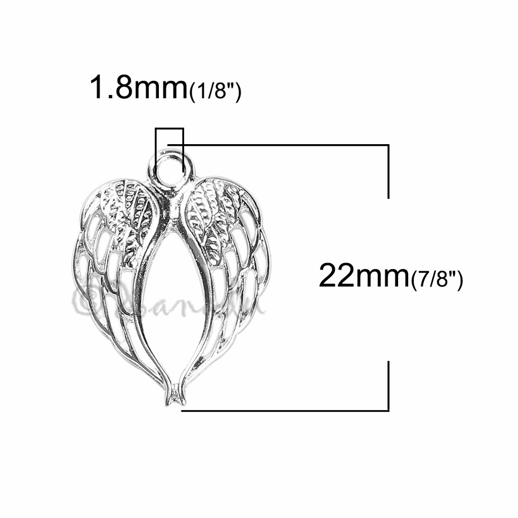 Angel Wings 22mm Wholesale Silver Plated Religious Charms C5868 - 5, 10, 20PCs