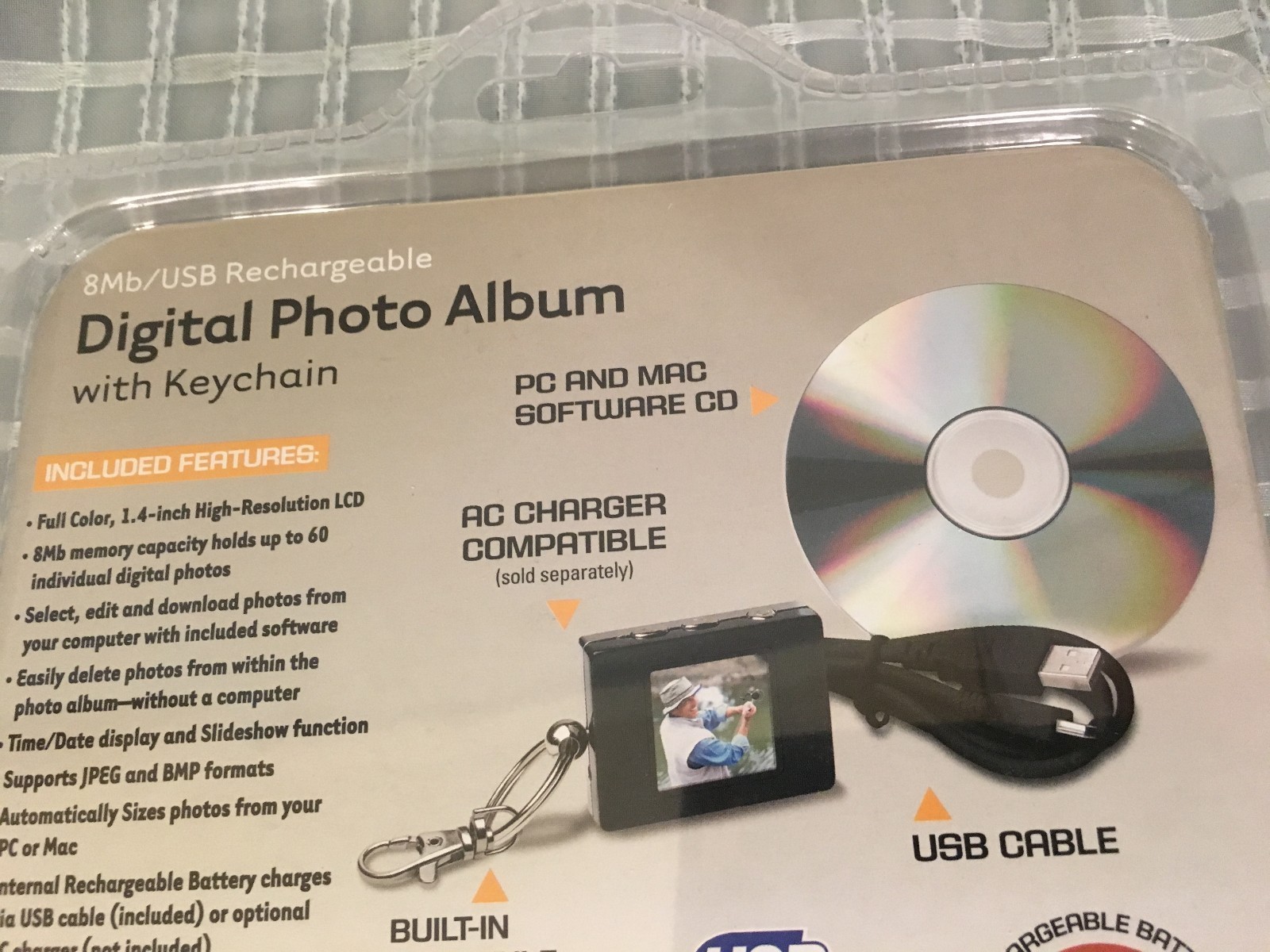 Digital Photo Album KEYCHAIN New 1.4 LCD 8MB USB Rechargeable Innovage