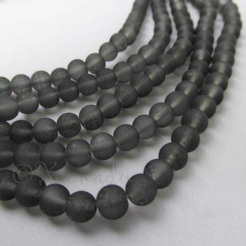 Gray 6mm Round Frosted Glass Beads Wholesale Strands G4582 - 75, 150 Or 300PCs