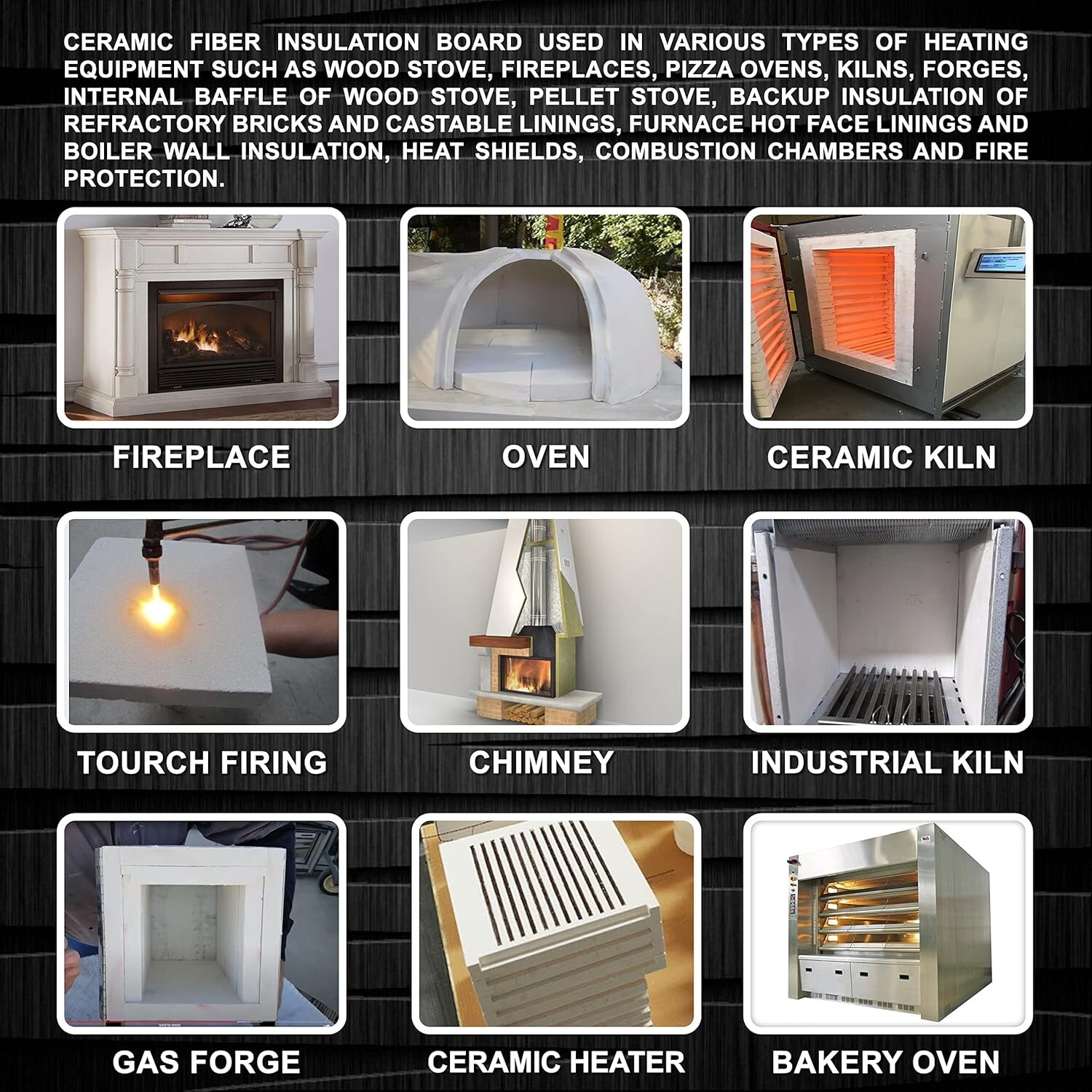 Recommended Uses For Product: Wood stoves, fireplaces, pizza ovens, fire protection
