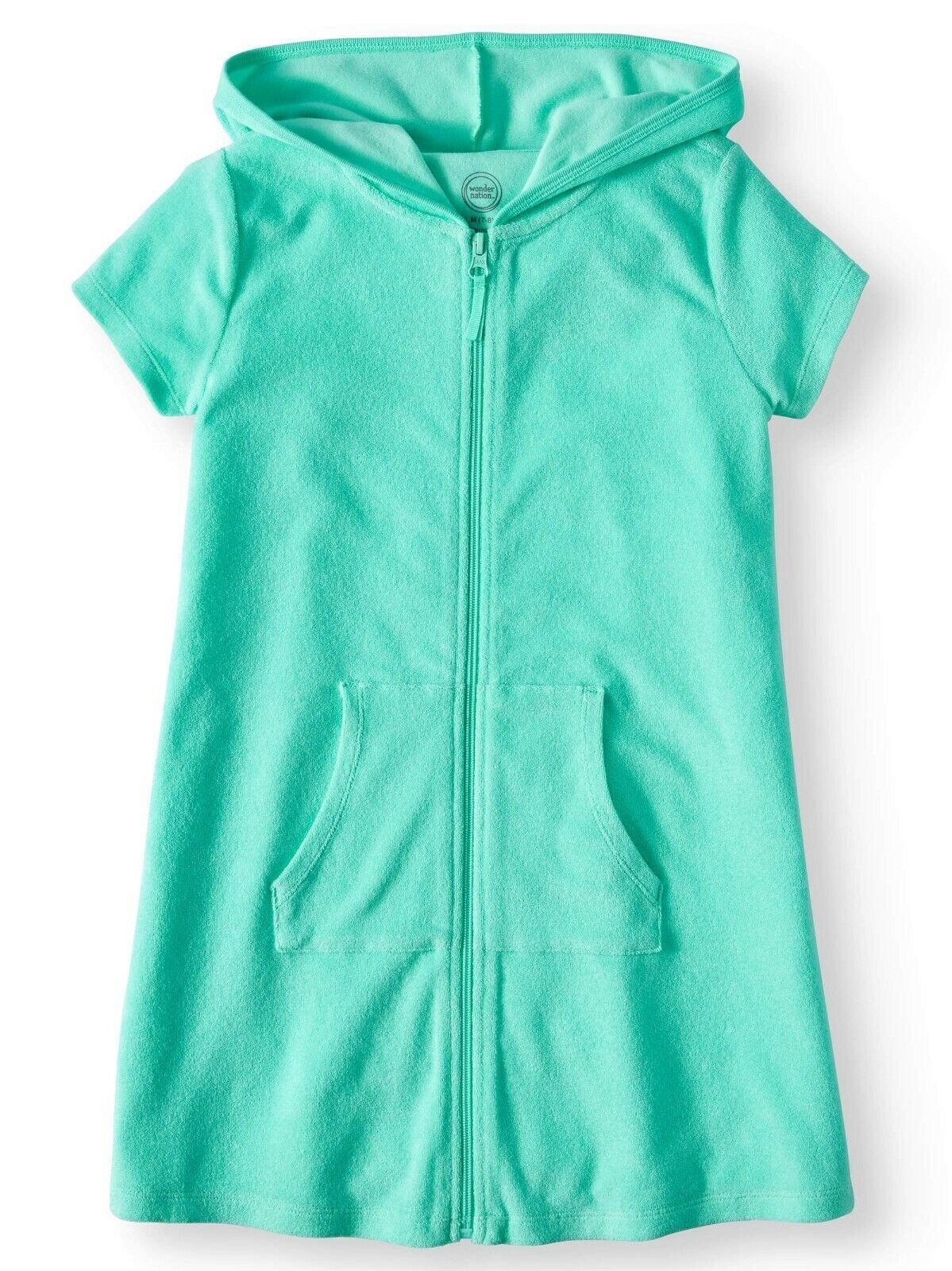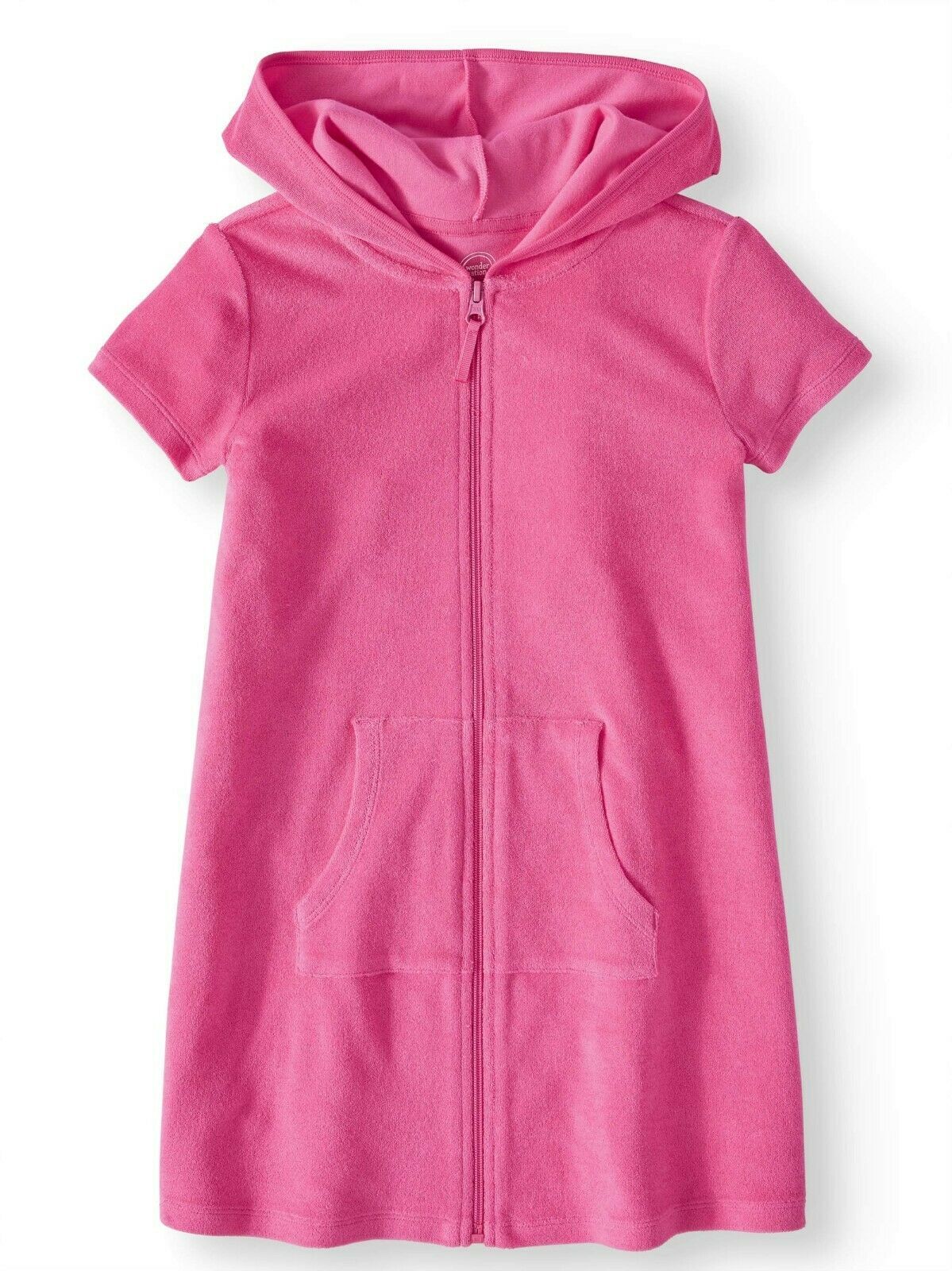 Girls Girl 4-18 Pink White Blue Hooded Terry Swim Beach Cover Up