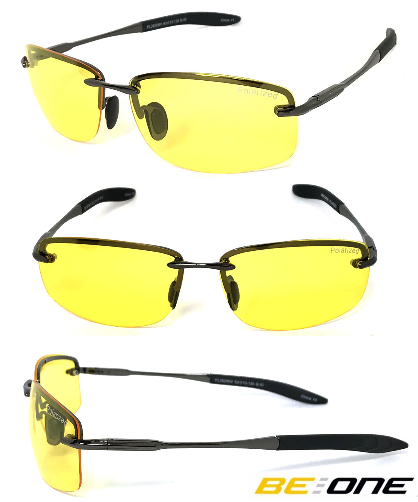 BeOne Rimless Polarized Night Driving Sunglasses Yellow Lens Premium Quality