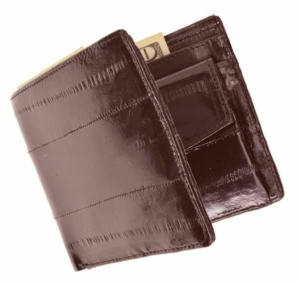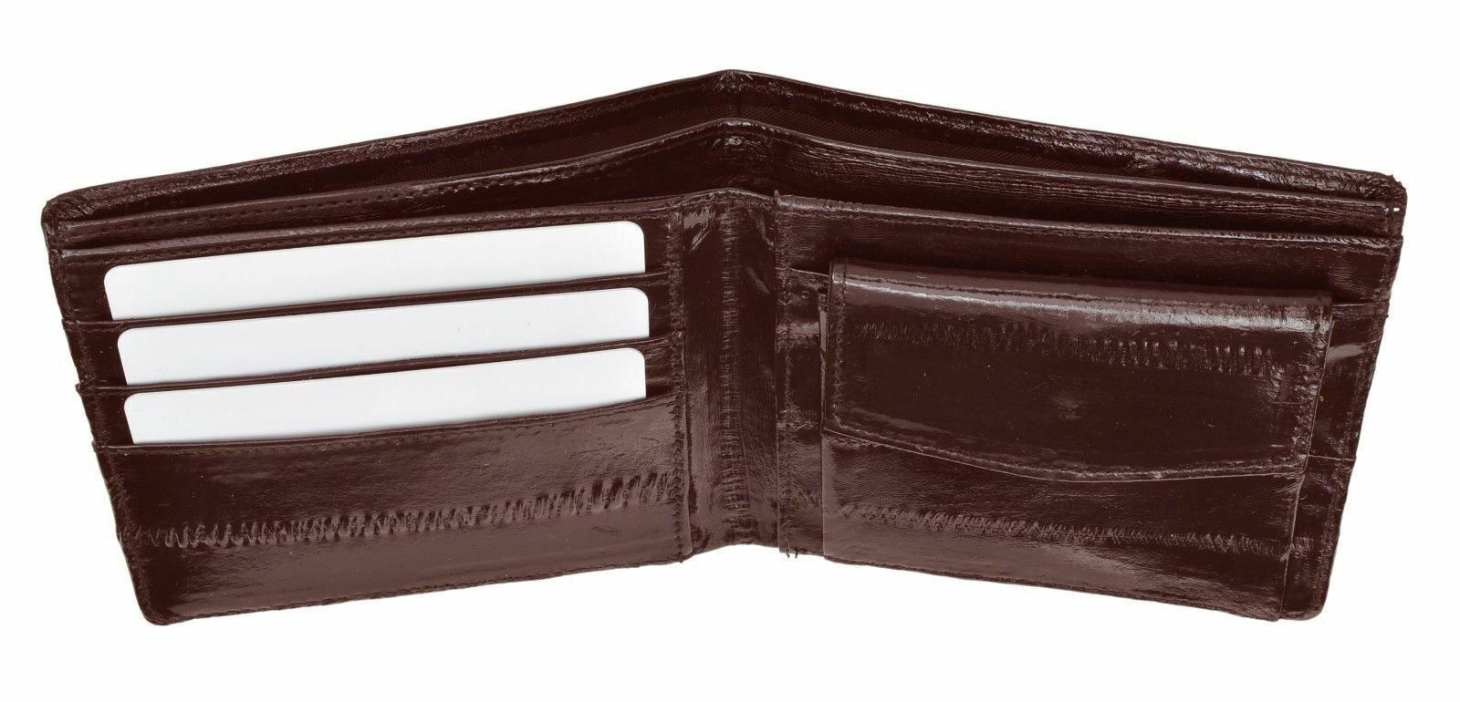 как выглядит Mens Genuine Eel Skin Leather Bifold Credit Card Wallet with Coin Pouch Burgundy фото