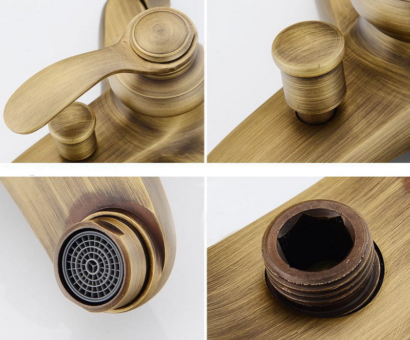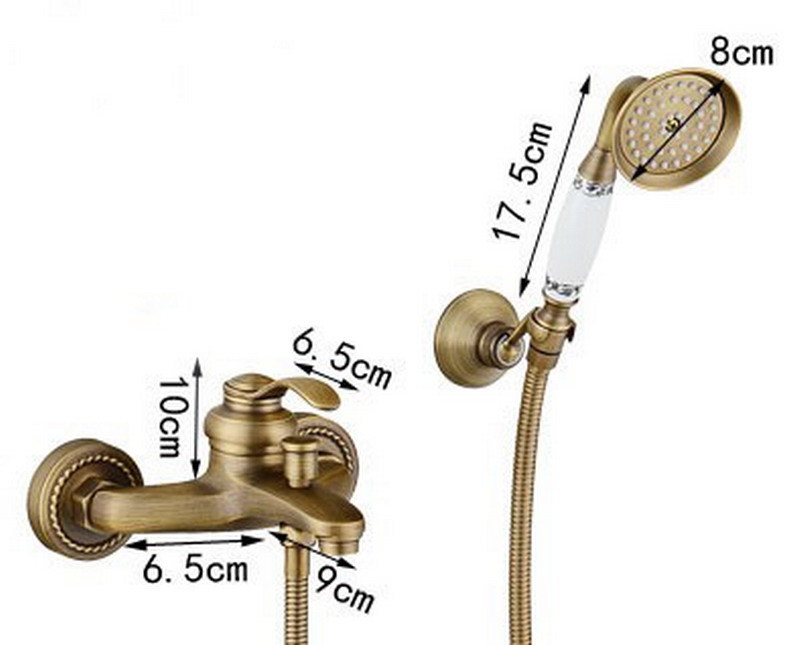 как выглядит Antique Brass Wall Mounted Bathtub Mixer Faucet With Handheld Shower Kdd02 фото