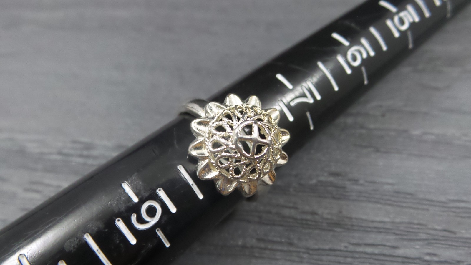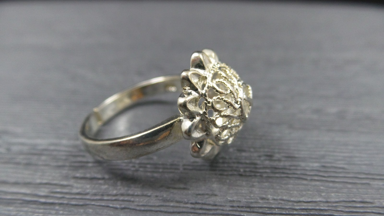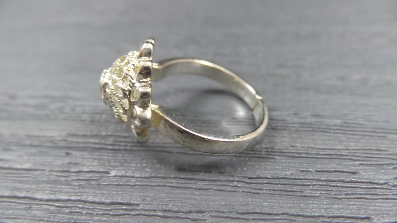 как выглядит Vintage Sterling Silver Scroll Sunflower Split Band Dome Ring Size 8 фото