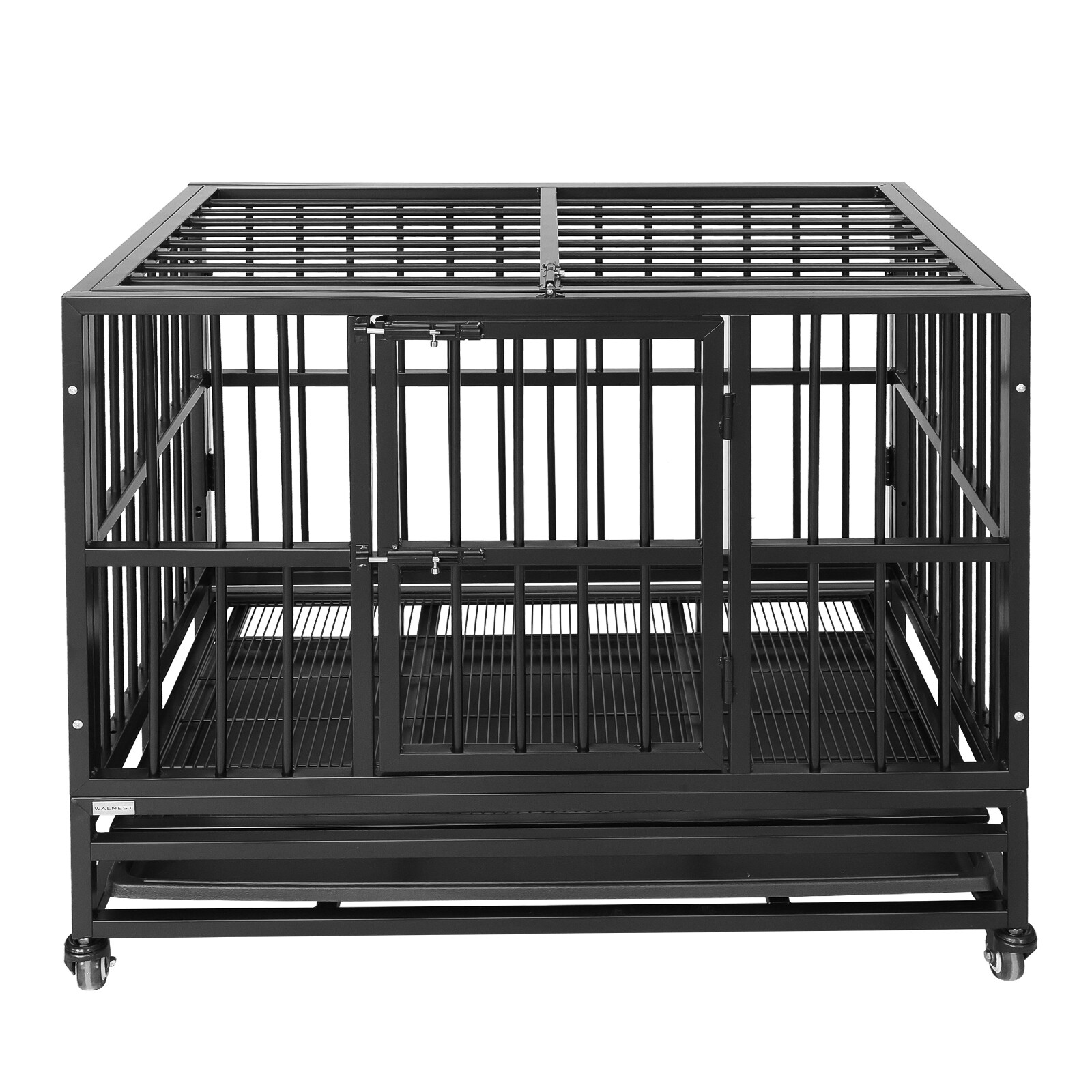 36/43/47 Gray Dog Crate Cage Large Pet Kennel with Tray Wheels Heavy Duty