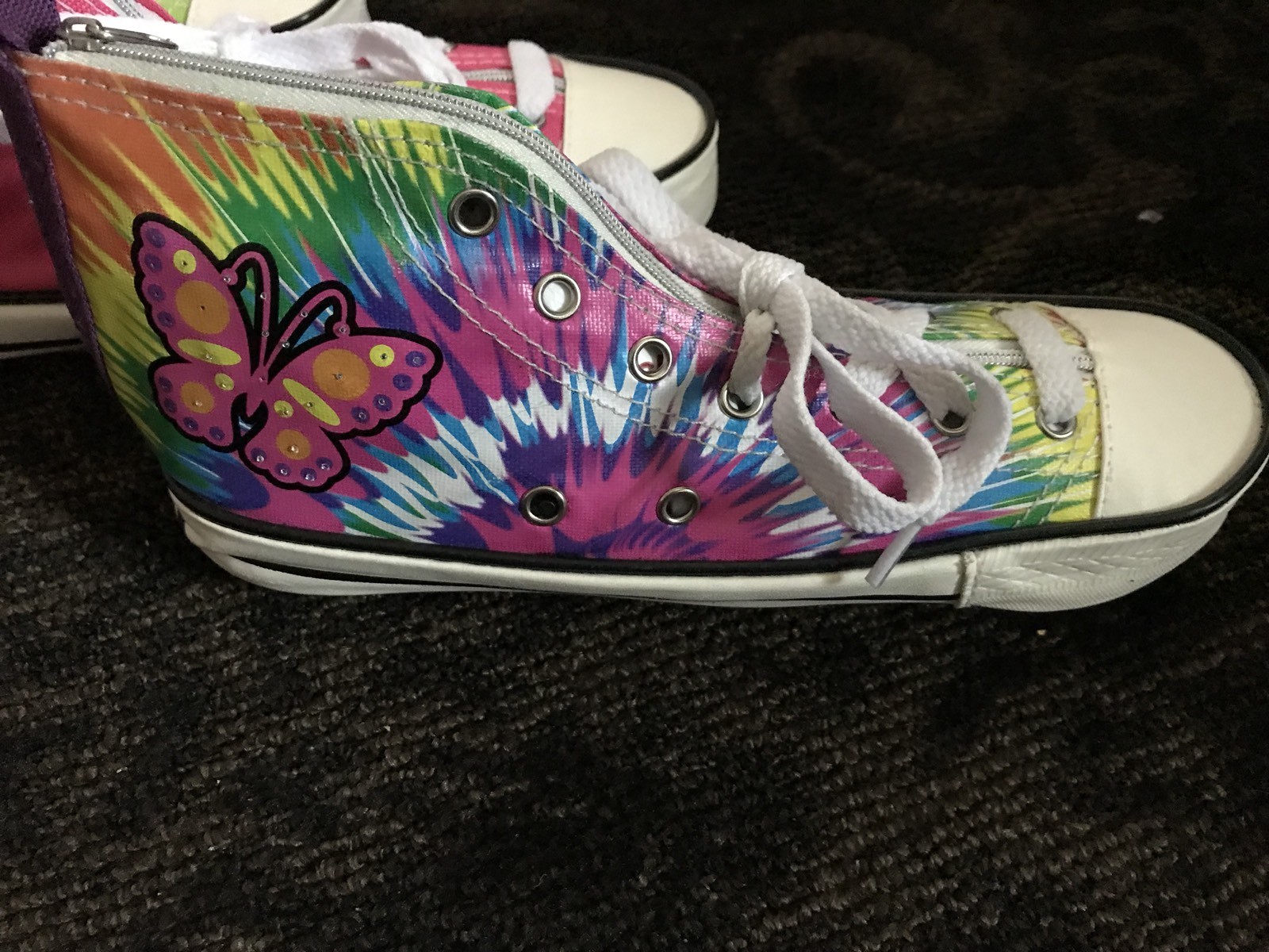 как выглядит SNEAKER LIGHTUP PENCILCASE PEACE/BUTTERFLY/FLOWER HIGHTOP BACK TO SCHOOL фото