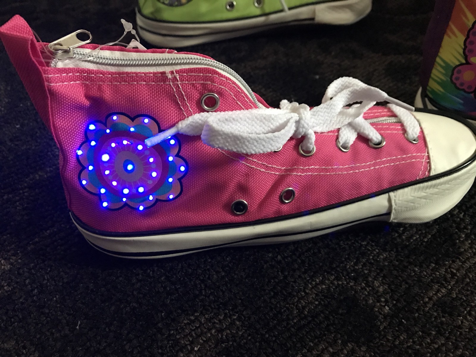 SNEAKER LIGHTUP PENCILCASE PEACE/BUTTERFLY/FLOWER HIGHTOP BACK TO SCHOOL