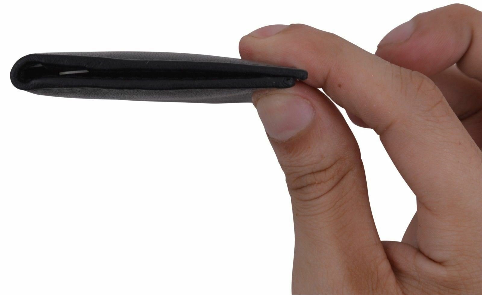 как выглядит Black Genuine Leather Mini Slim Credit Card Holder Thin Mens Wallet by Marshal фото