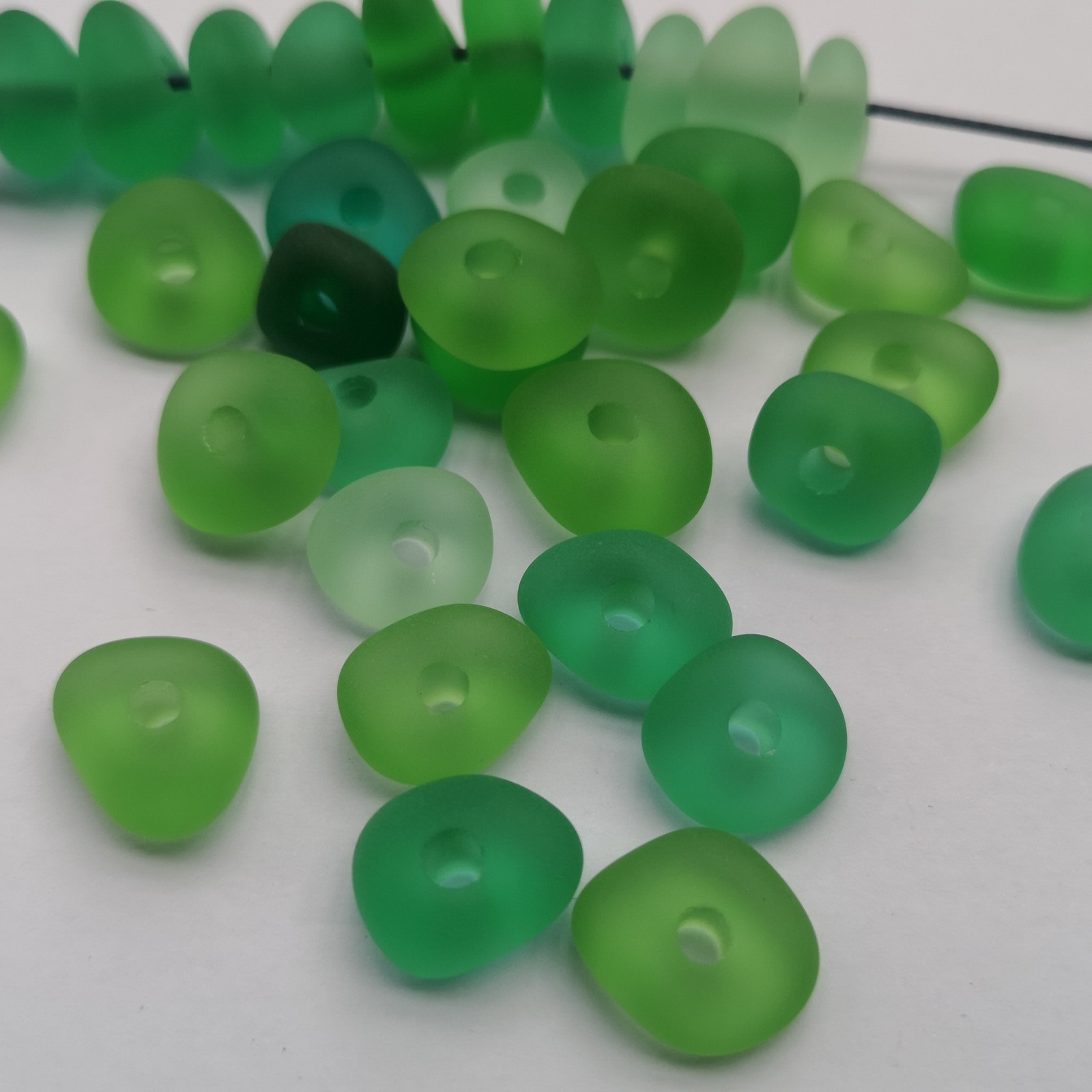 как выглядит 10 pcs green 3mm big holes center drilled sea beach glass jewelry making фото